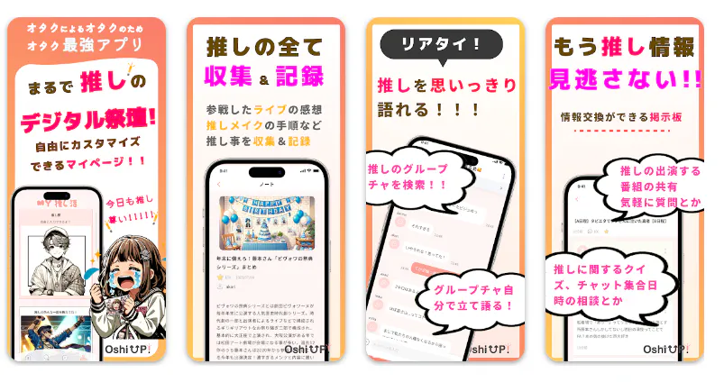 推し活アプリ「推しUP!」の特徴をご紹介します。