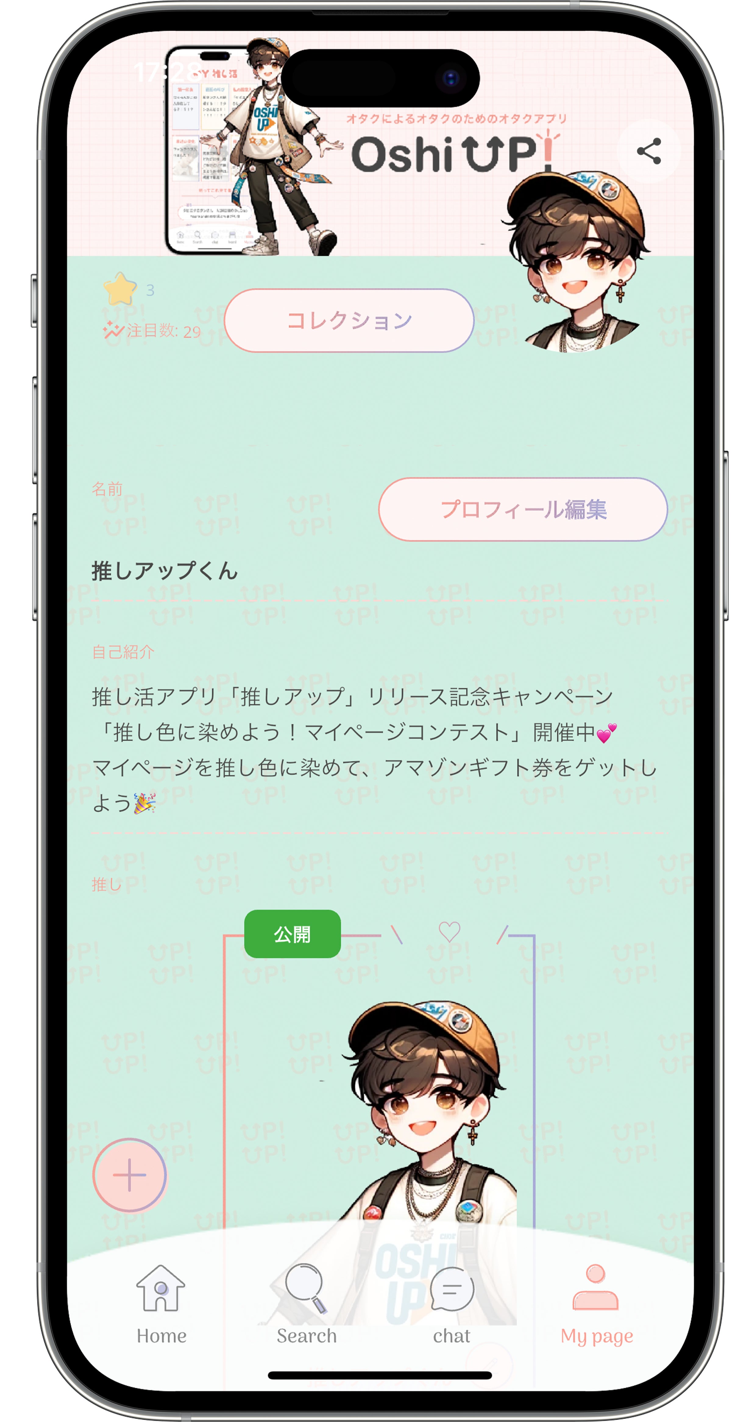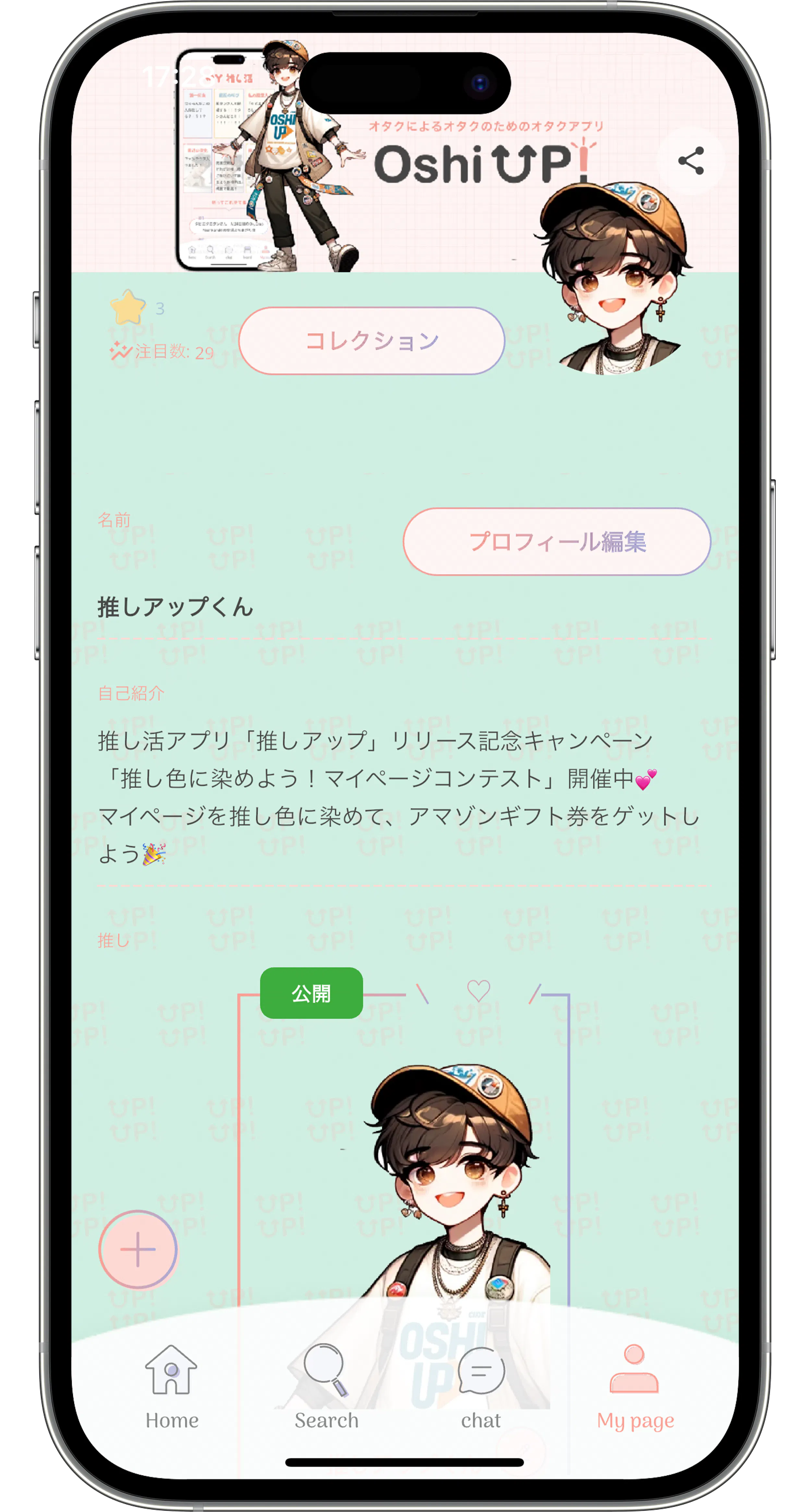 「推しUP!」では、マイページを自由にカスタマイズすることができ、また公開・非公開を設定できるため、公開されたマイページは色んな人が閲覧することができます。マイページには画像をはじめ、YoutubeのURLを貼れるなど、飾るだけではなく、布教活動にもおすすめな機能が満載です!