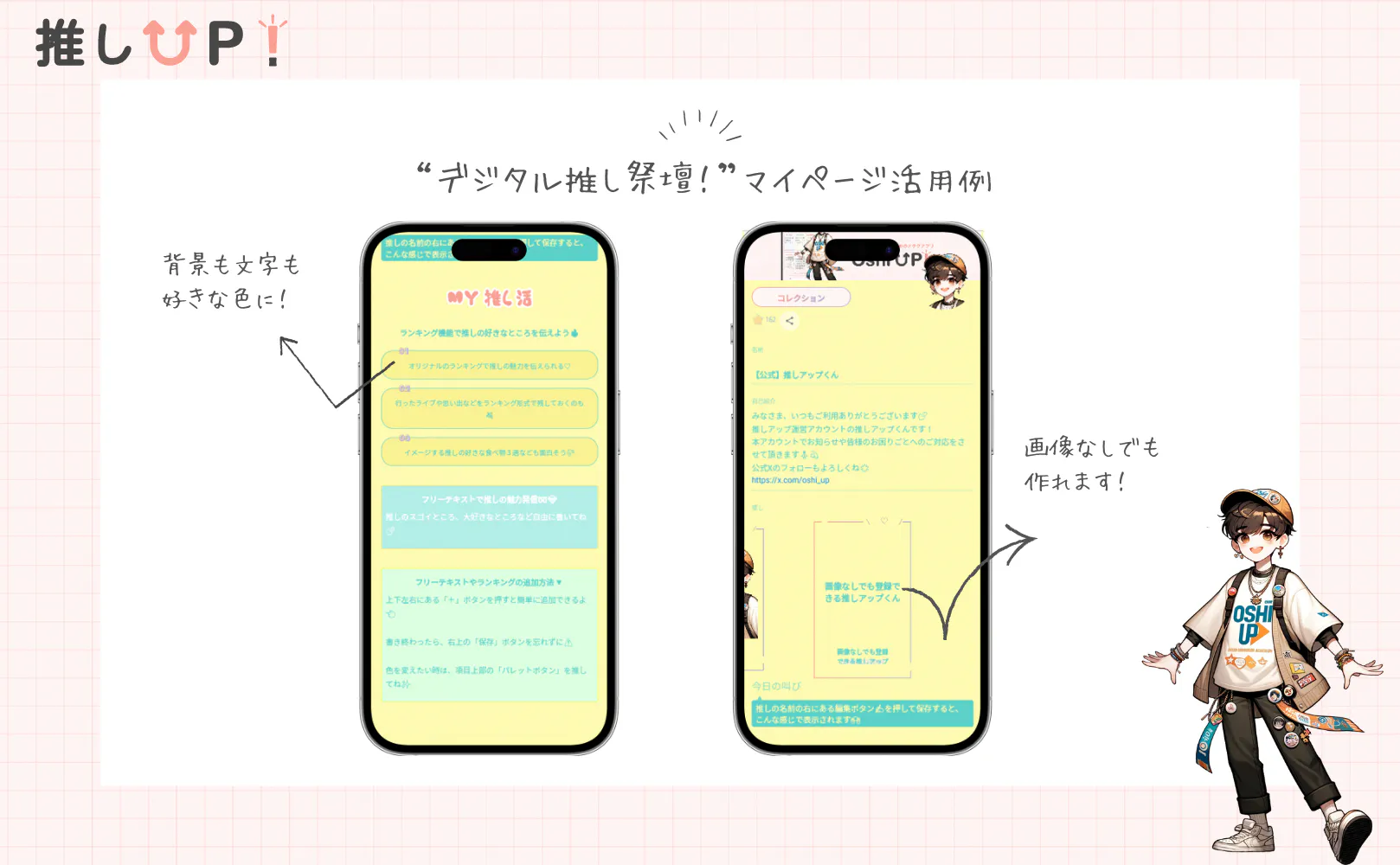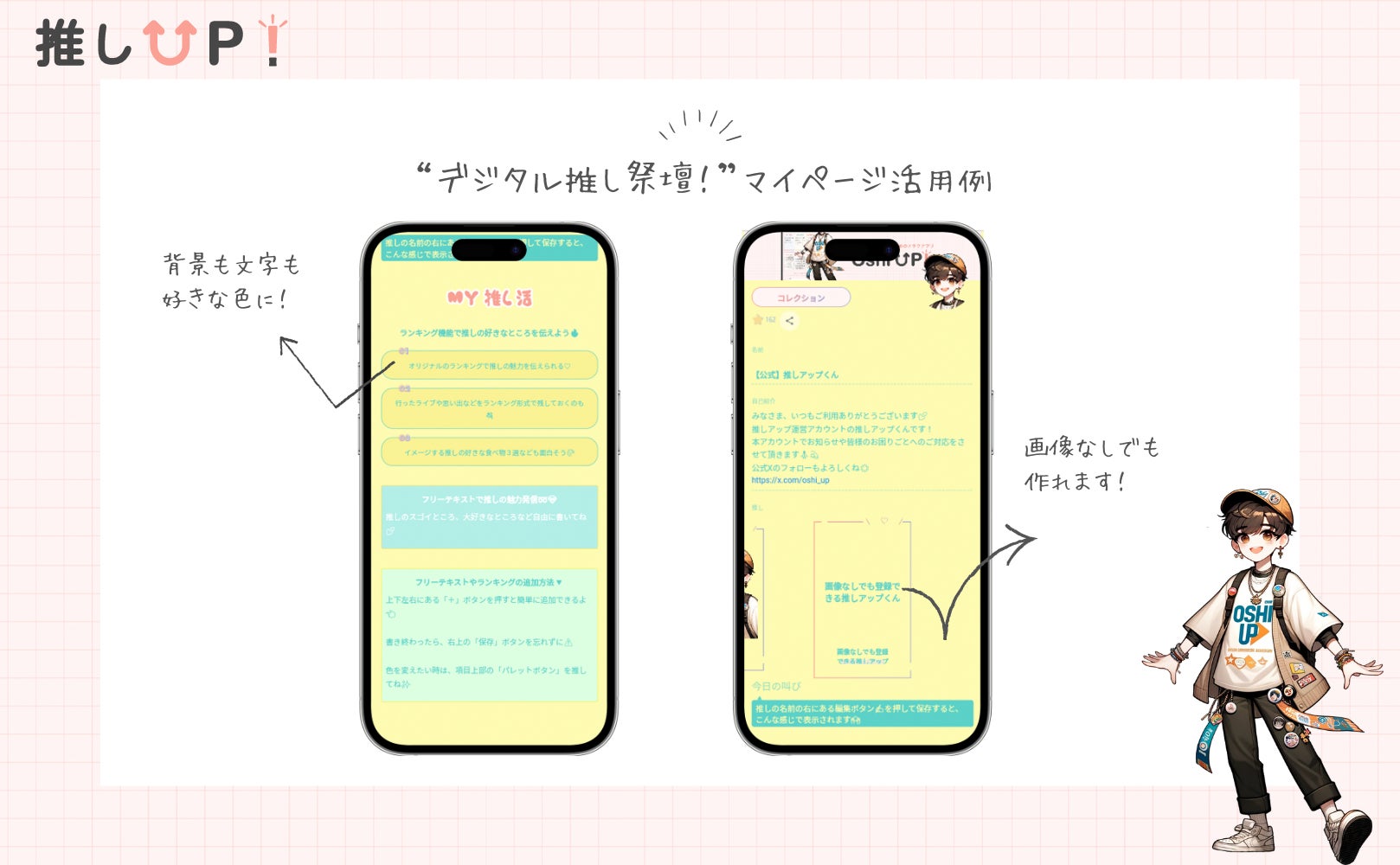 →→ 登録、利用無料!「推しUP!」アプリを試してみる ←←