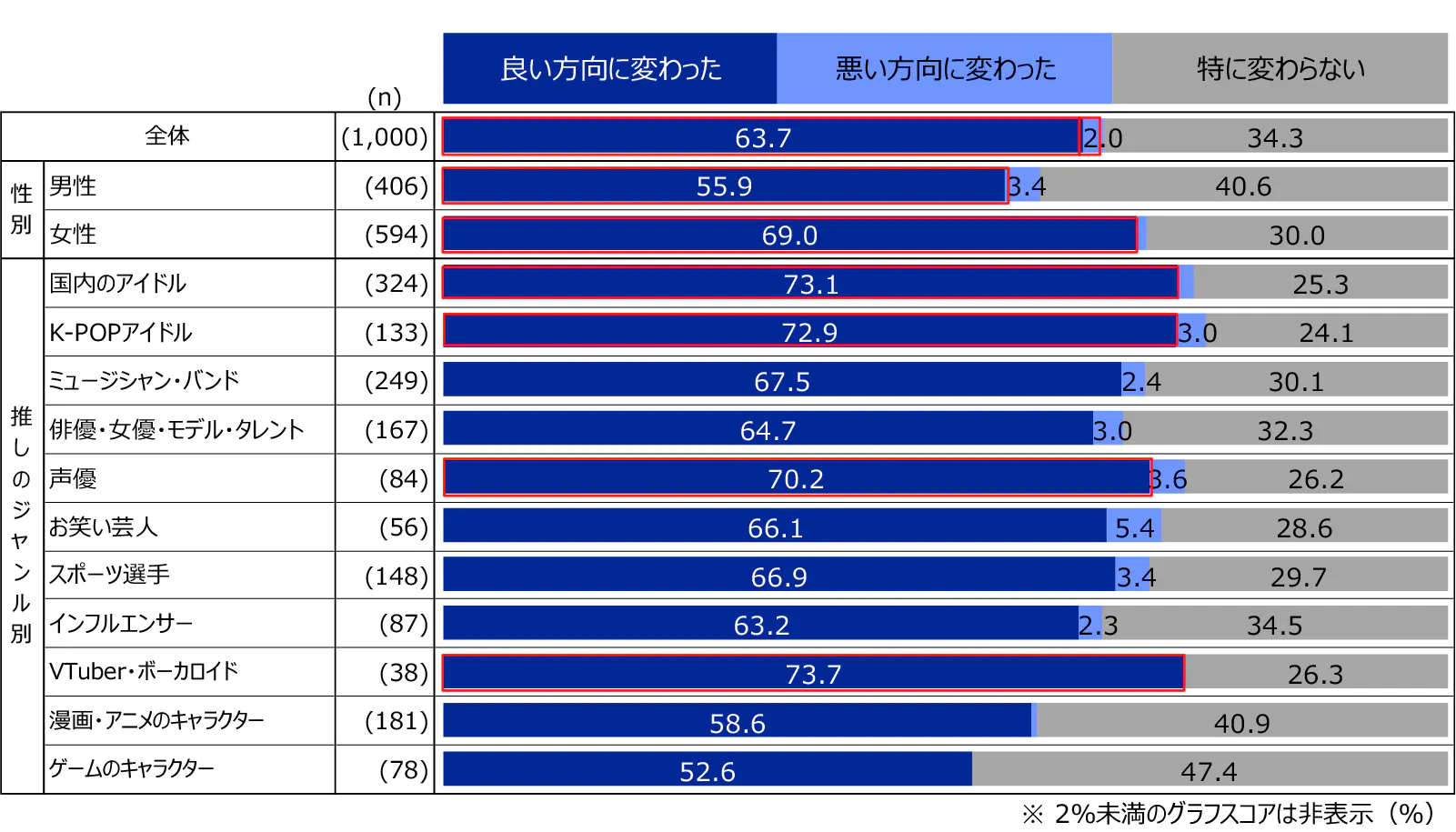 参照:楽天インサイト株式会社『「推し活」していることを周囲に共有している人は74.2%!「推し活」で人生が「良い方向に変わった」人は6割以上』推し活に関する調査
