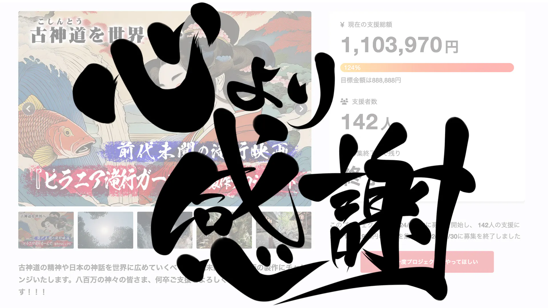 昨日、映画『ピラニア滝行ガールズ』クラウドファンディングの募集が終了いたしました!