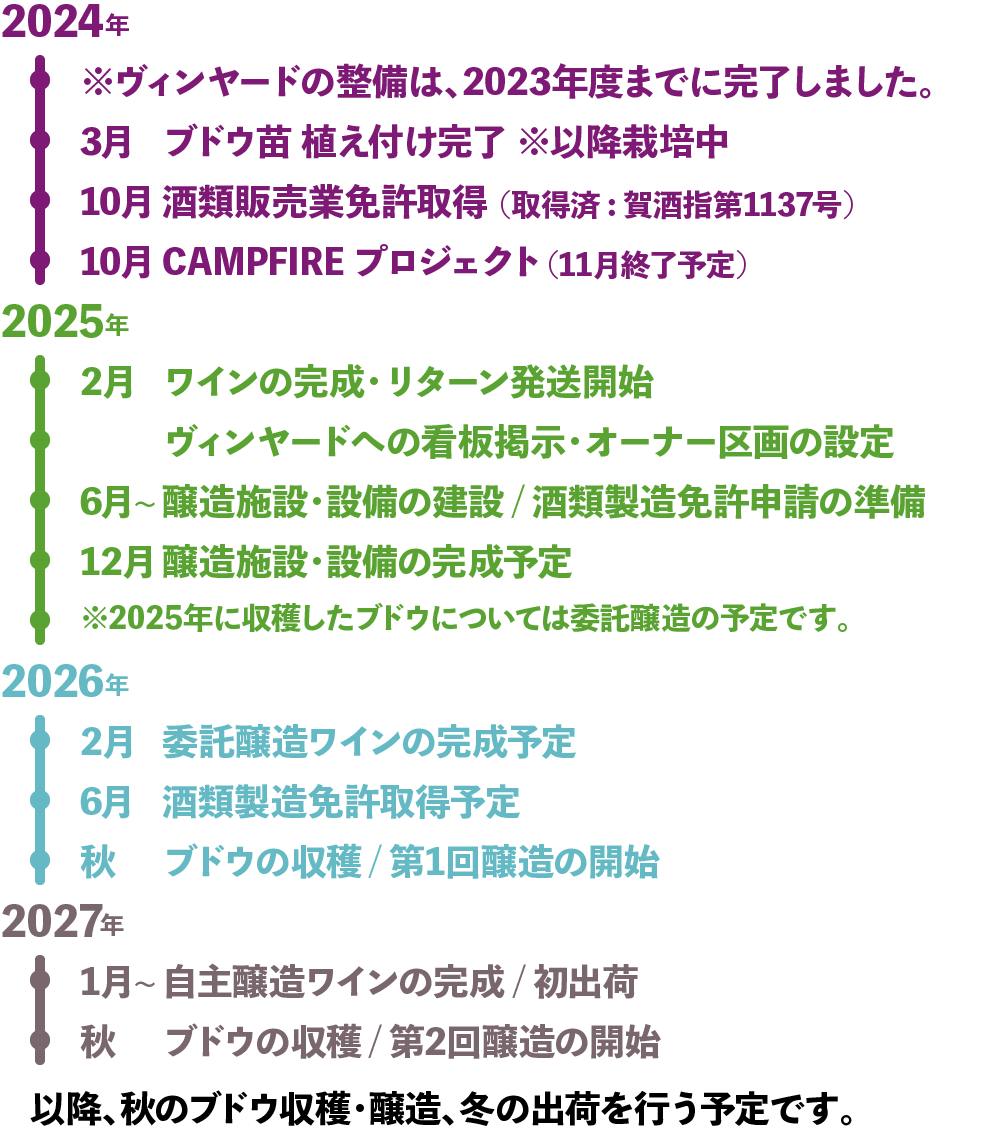 今後のスケジュール ~ 醸造施設の開設にむけて現在、2025年度の醸造設備の設置、2026年秋の醸造開始に向けて進めており、今回のプロジェクトで調達した資金につきましては、醸造施設建設のための資金の一部とさせていただきます。