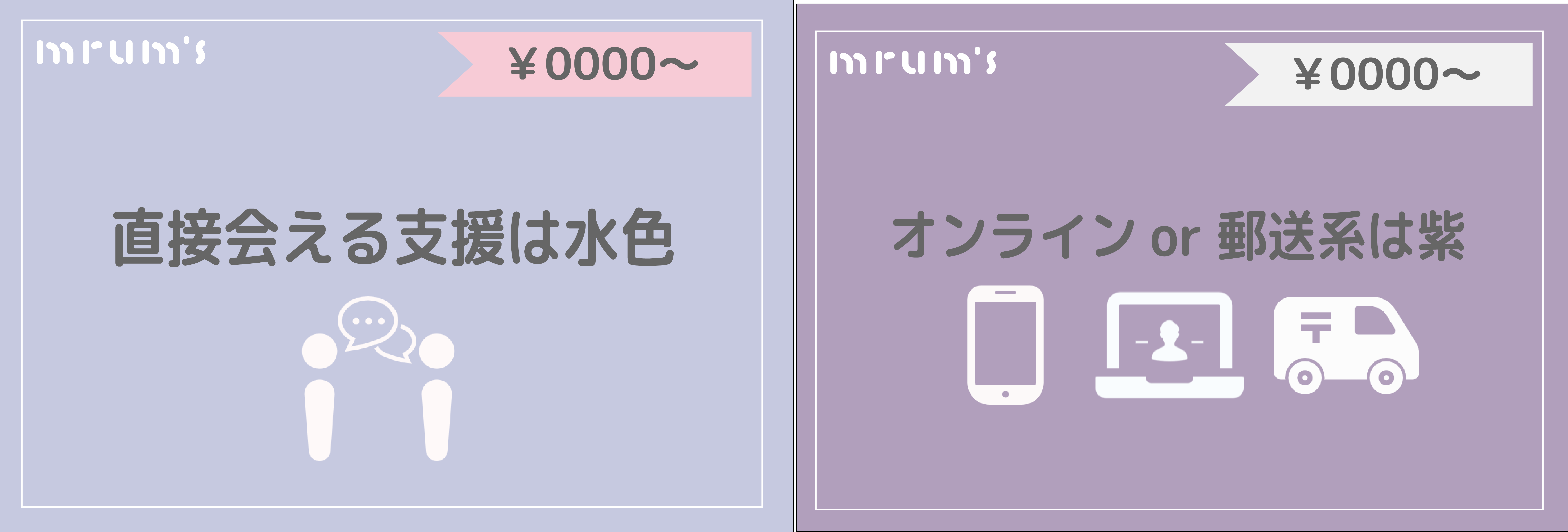 ・オンラインや遠方にいる方でもご参加できる支援はリターン画像左下に下記アイコン+紫色(右)