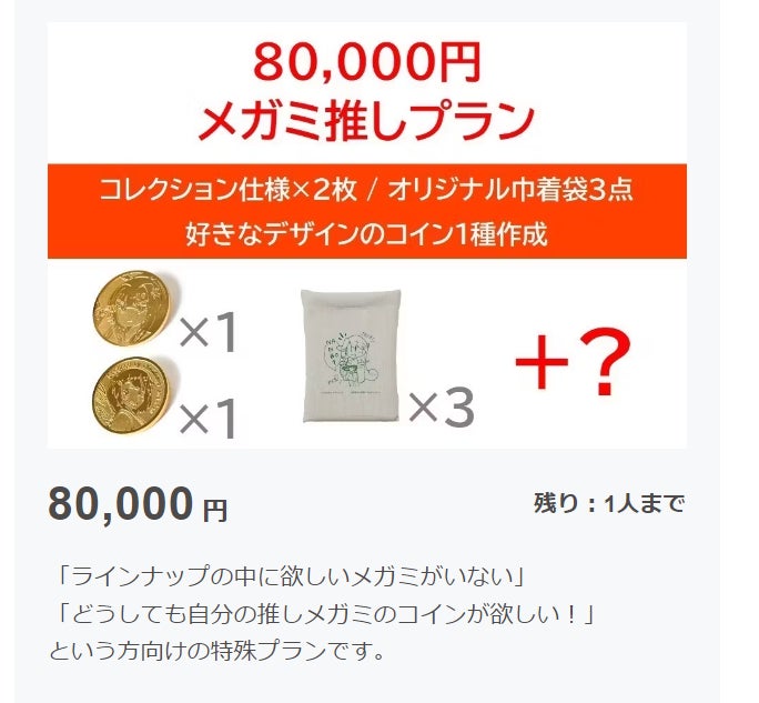 これはオリジナルデザインのコイン1種類を作れる特別プランです。