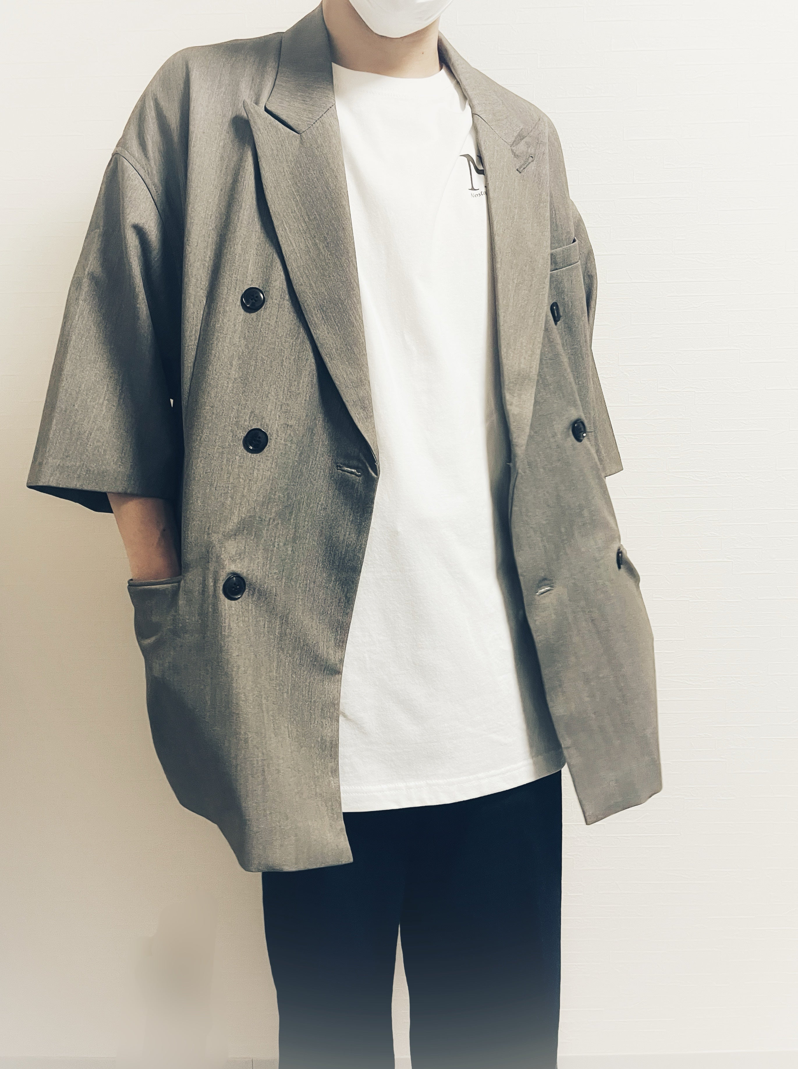 オーバーサイズめに着ても良いですし、シンプルスタイルのサイズでも良いと思います。