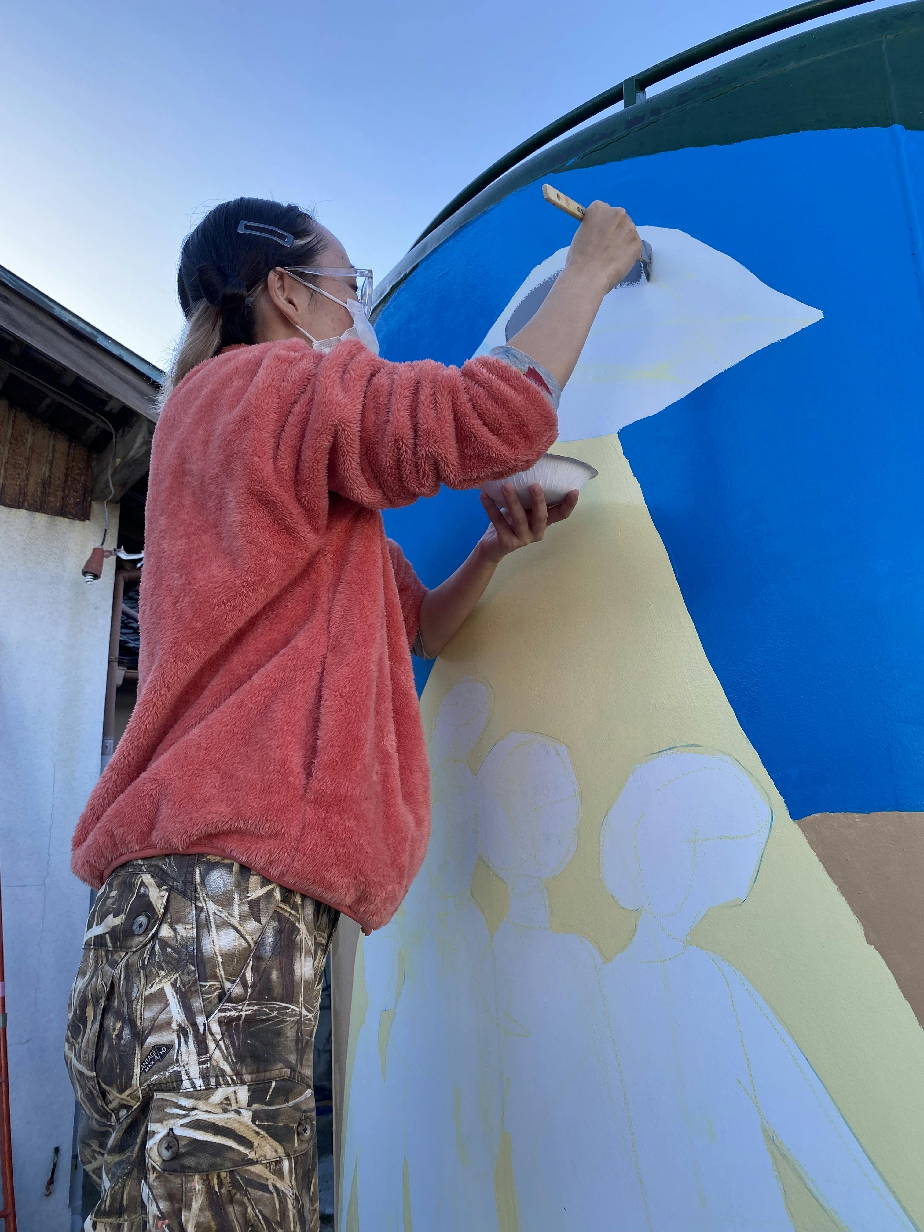 この日、ハシゴを返却しなければならなかった我々は、足場が必要な高いところを先に終わらせる必要がありました。