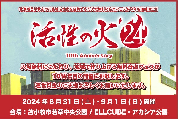 苫小牧には夏の「とまこまい港まつり」や「樽前神社祭り」がありますが、現在ではこの「活性の火」も一定の認知度を得た地域の夏の風物詩としてご認識いただけているかと捉えております。