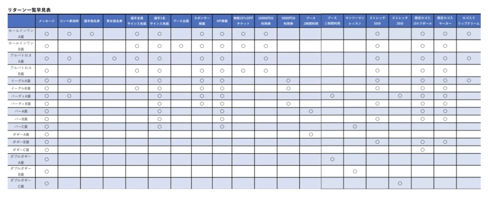 など、お礼のメールをはじめ様々なリターン品をご用意させて頂いております。コンペ式トーナメント参加枠につきましては、当日プロとご一緒にラウンドができる枠となっておりますので、ご参加頂ける方のみお申し込みください。ご参加頂かないリターンにも選手からのサインなどご用意させていただいております。詳細につきましては、リターン詳細よりご確認ください。また運営施設の利用券はゴルフの練習・マンツーマンレッスン・ストレッチ整体がございます。