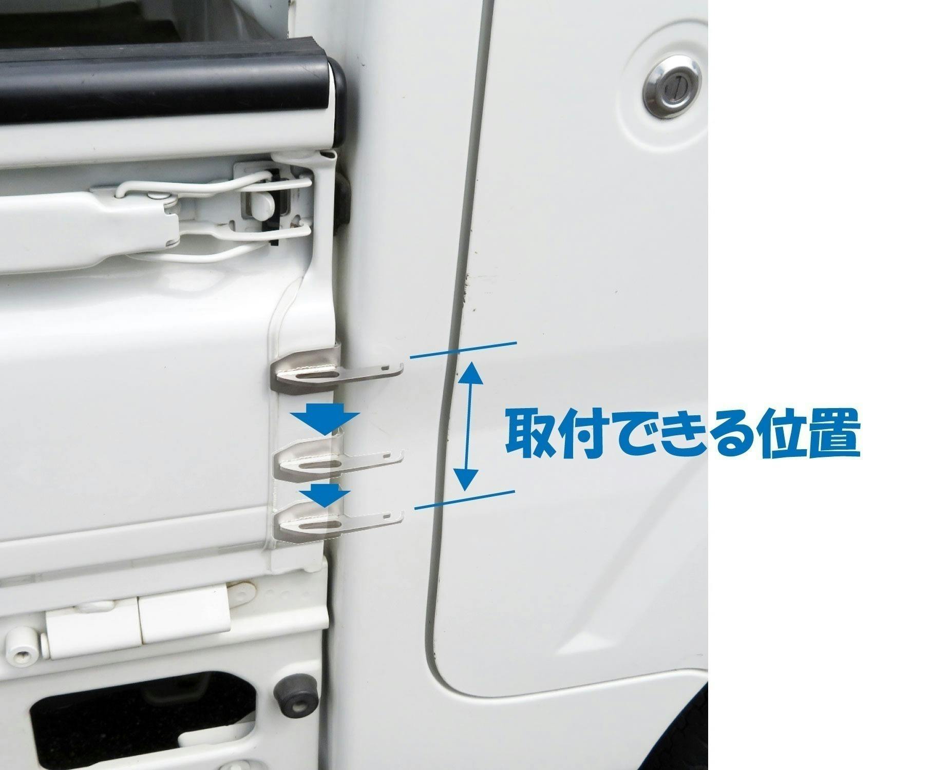軽トラックの荷台のアオリに取付けてください。