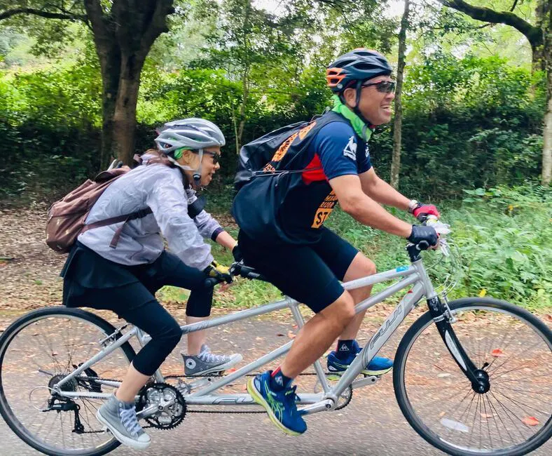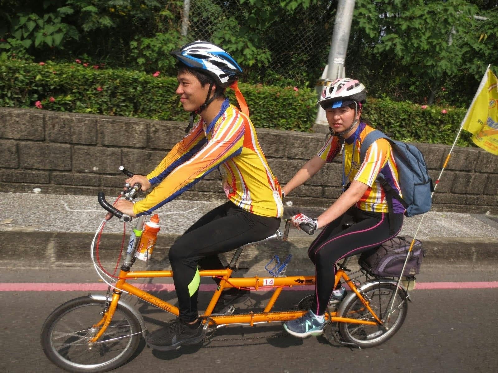 写真13:タンデム自転車の前と後ろの乗車スタイル