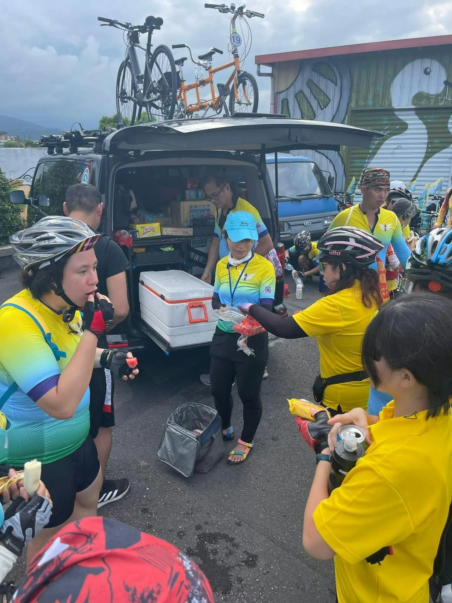 2024/10/15 15:32日本と台湾合同の視覚障害者タンデム自転車チームの台湾1周、スタート地点に戻ってきました! 途中、台中チームが差し入れを持って大勢で応援に。高尾に入るまで交通整理、加油!の1000円、お別れする時は沿道の両側に立って大合唱、ぐっときました。 眠気と戦った11日目、たくさんのボランティアの皆さん、どうもありがとうございました。 もっと見るあと1日!寺院を巡る93キロ、ラストは青いハイヒール!?台湾1周10日目