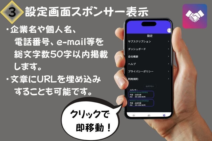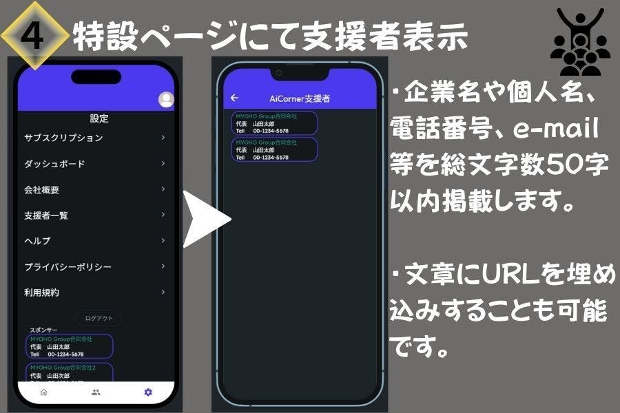 〈リターン3〉Aicorner応援企業スポンサー表示権