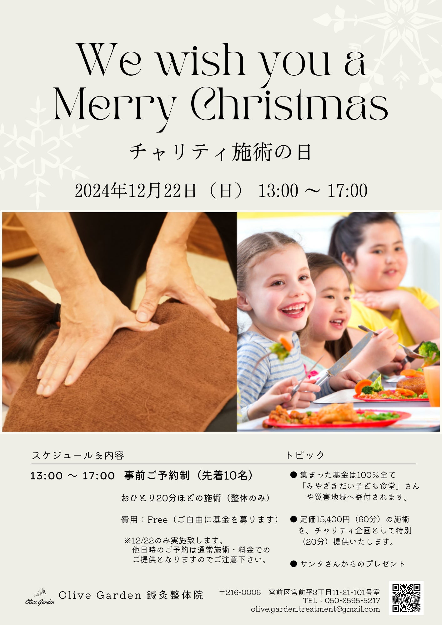 12月24日(火) 第一回 チャリティ施術の日 開催(日程変更の可能性あり)