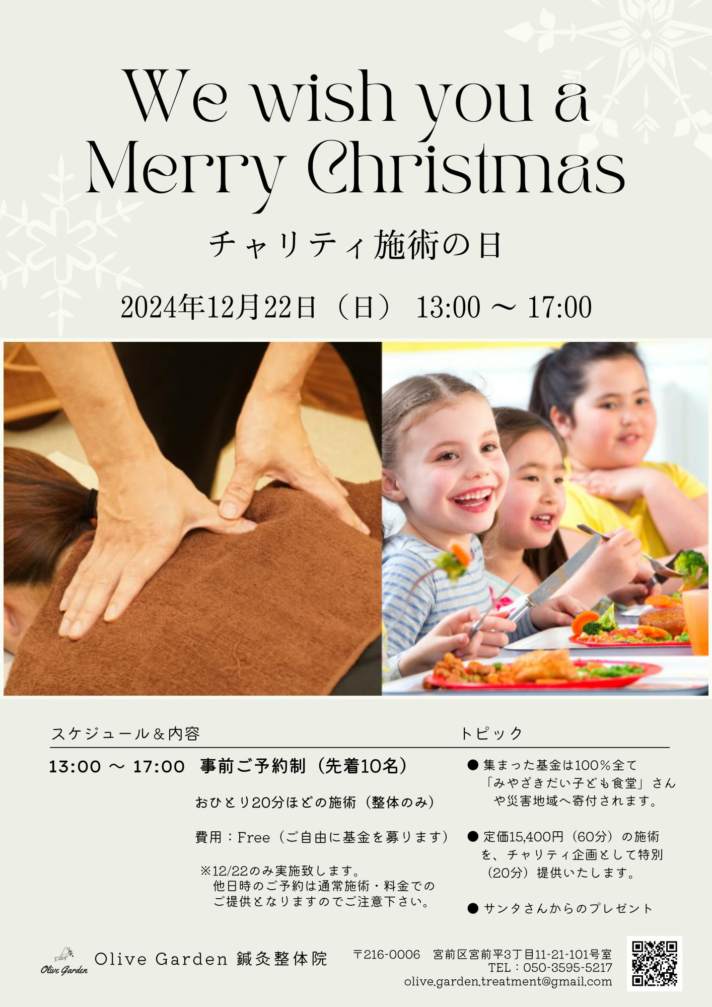 昨年、2024年末においてチャリティ施術を実施致しました。