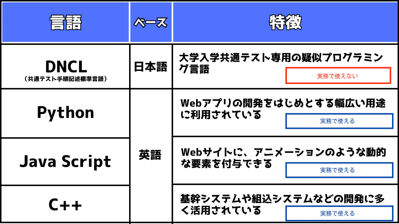 Daily Tutorが提供するプログラミング言語(Python/Java Script/C++)は3種とも実務で使える英語ベースのプログラミング言語で、それぞれコンピューターサイエンス・ゲーム開発・WEB開発に必要な知識ですが、プログラミングを学ぶことは単に技術者を養成するだけに限りません。