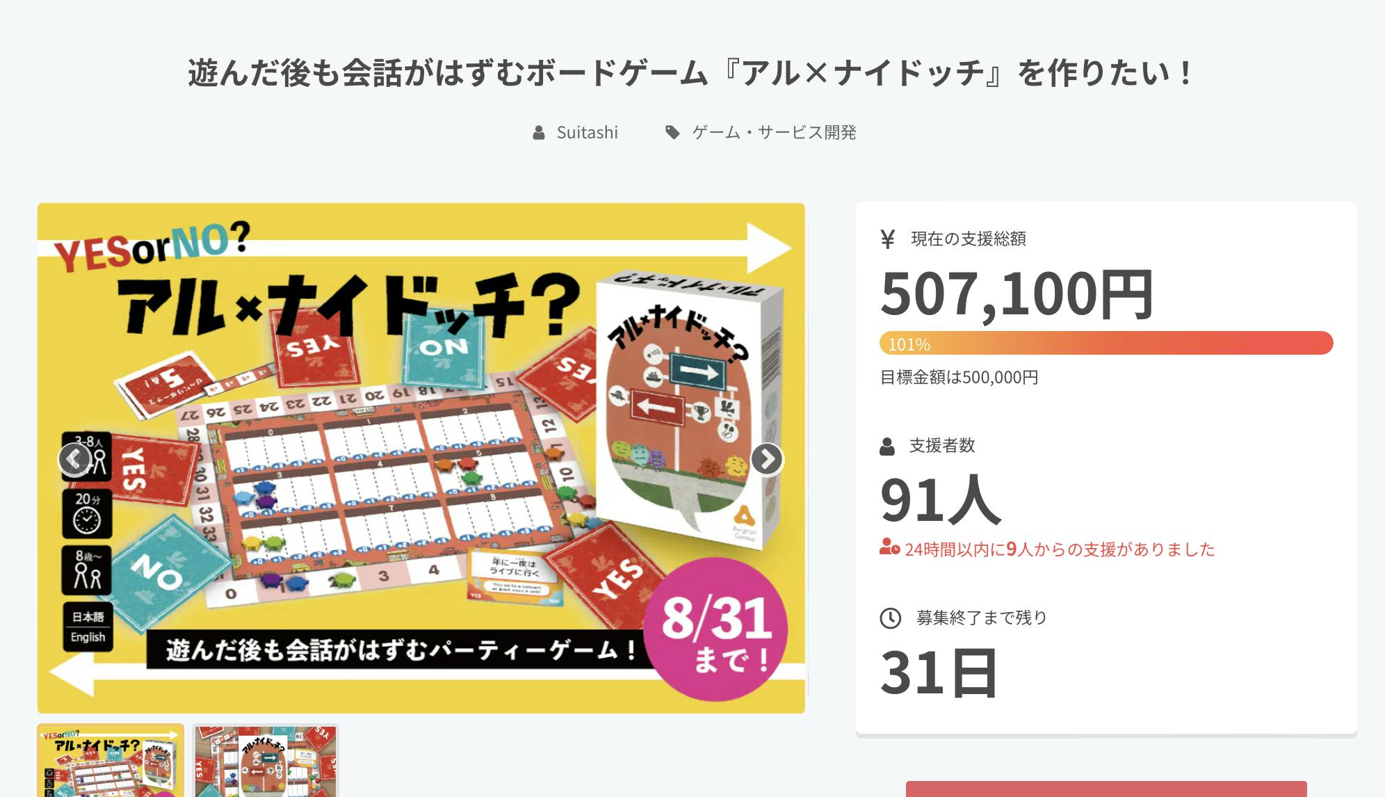 『アル×ナイドッチ』のクラウドファンディングはまだあと31日あります。この31日間で、まだ自分たちのゲームを知らない方にも届けれるよう、動いていきたいと思います。