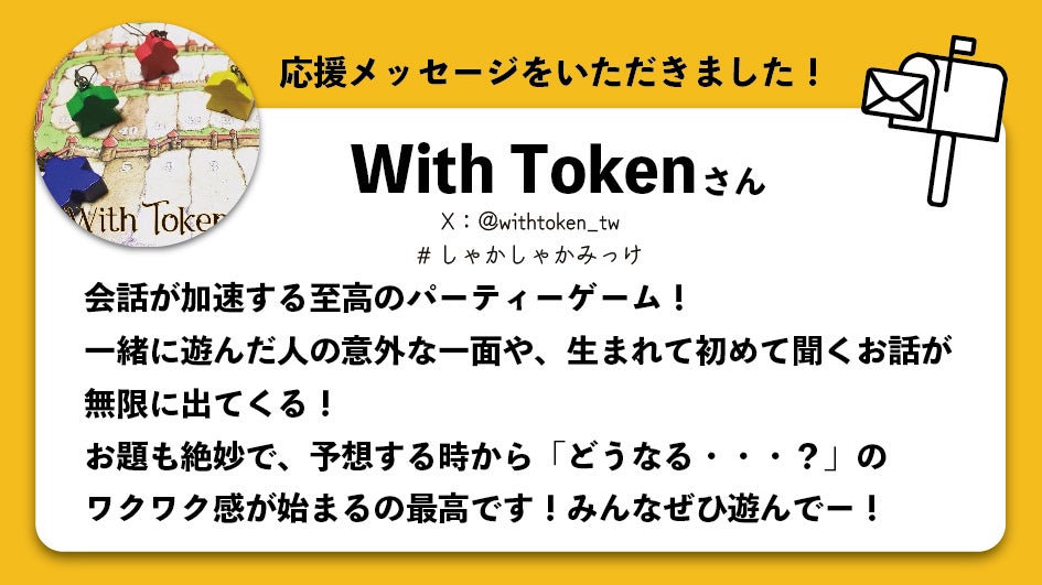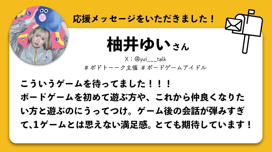 このクラウドファンディングを開始するにあたり応援してくださったゲームデザイナー様、ボードゲーム業界で活躍するアイドルの方を順不同でご紹介いたします。