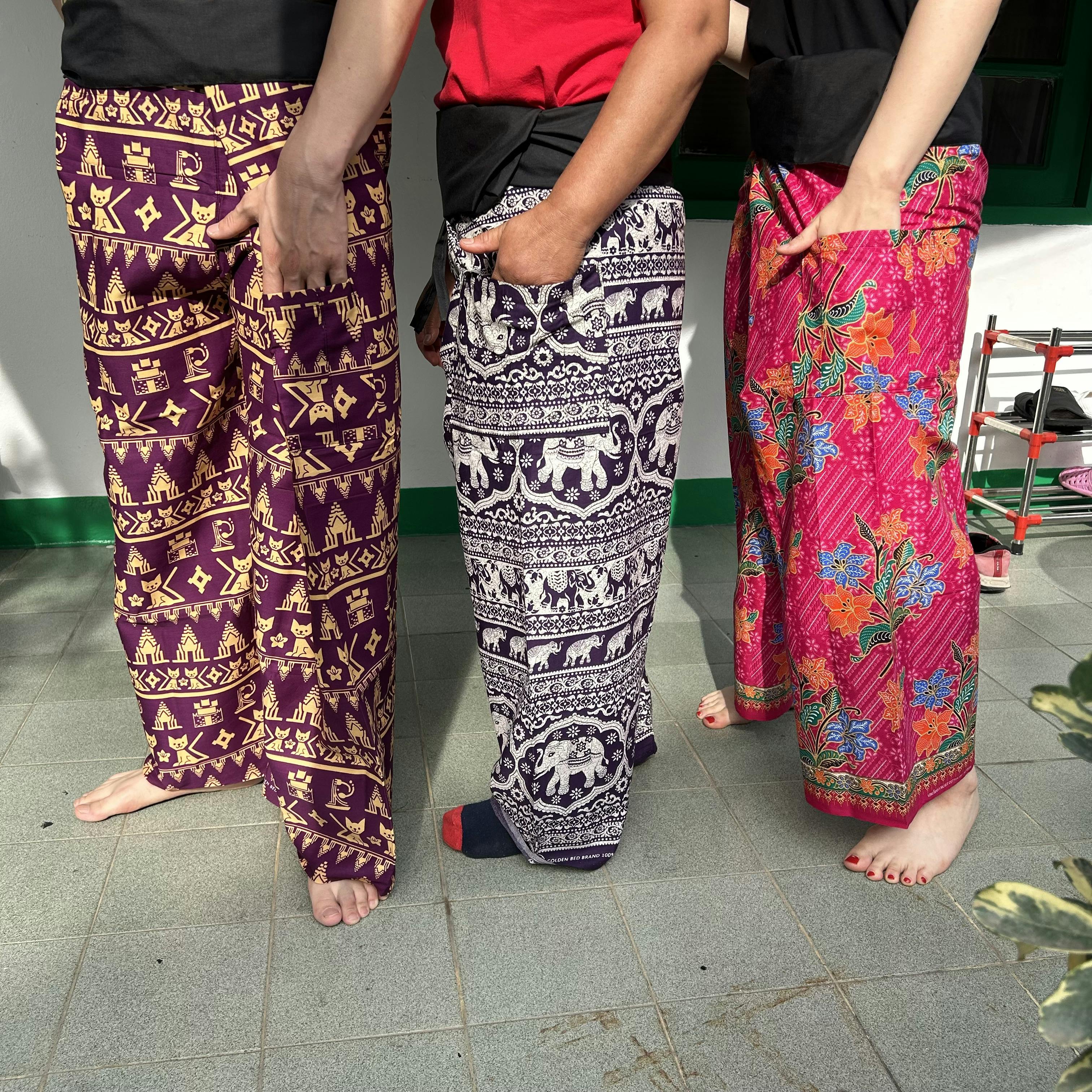 セラピストの施術着として、お客様のお着替えとして、目を引く可愛いパンツです。