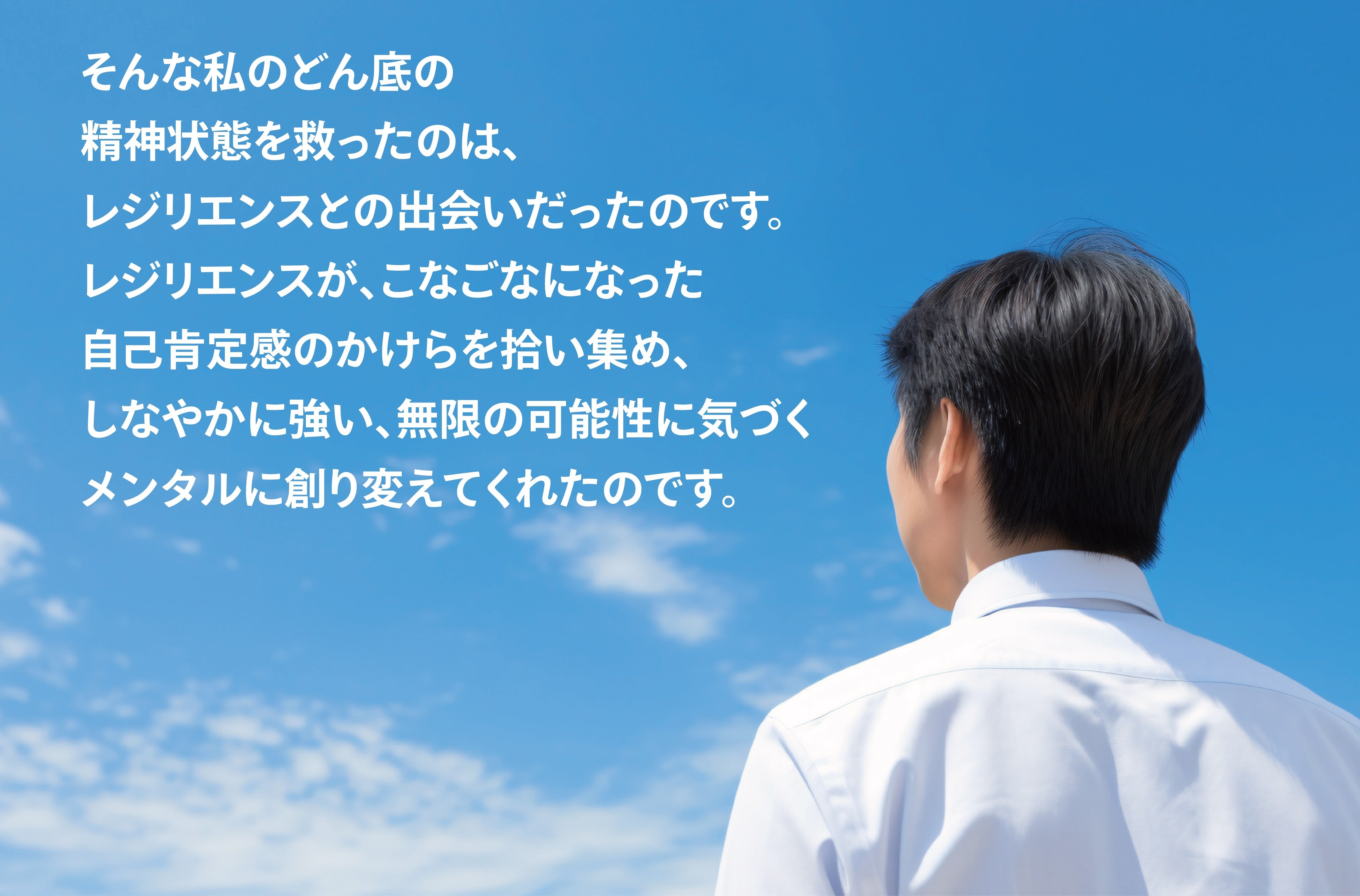 私は、10年前、レジリエンス(心の回復力)を知ることによって、逆境を克服するきっかけをつかんだのです。