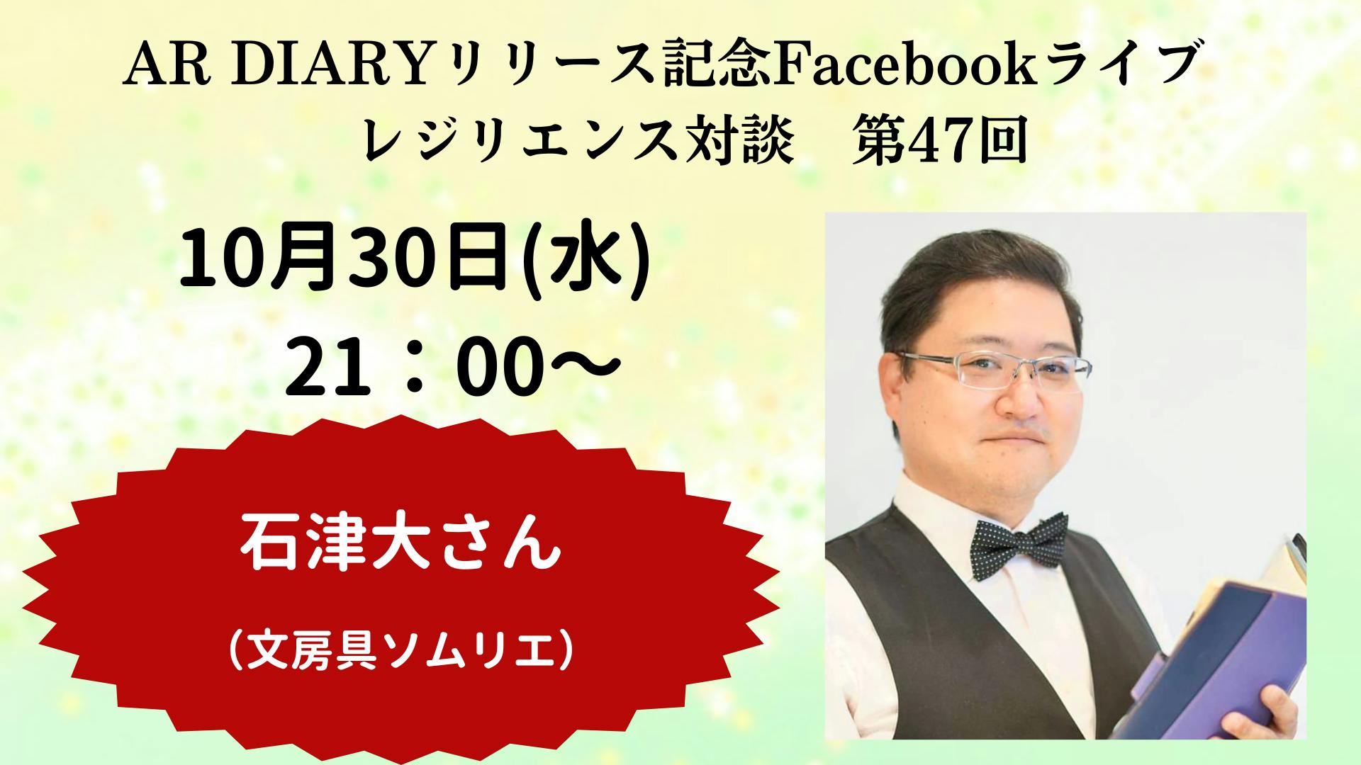本日は、21時から、文房具ソムリエの石津大さんをゲストにお招きしてFacebookライブを行います。