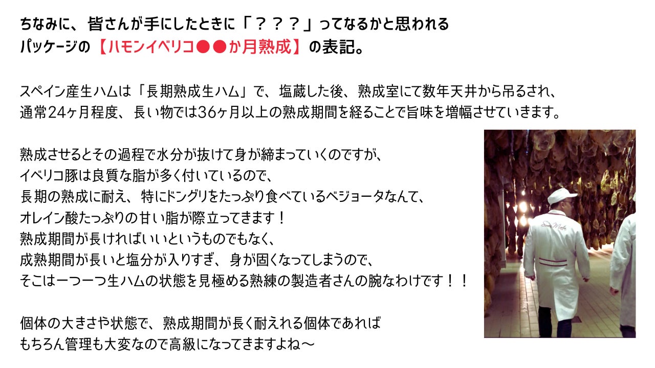 その超長期熟成の職人魂こもった商品は、どんぐりをふんだんに食べて育ったイベリコ豚を超長期熟成することで、ナッツやチーズのような芳醇な濃厚な旨味を、より感じることができます!!