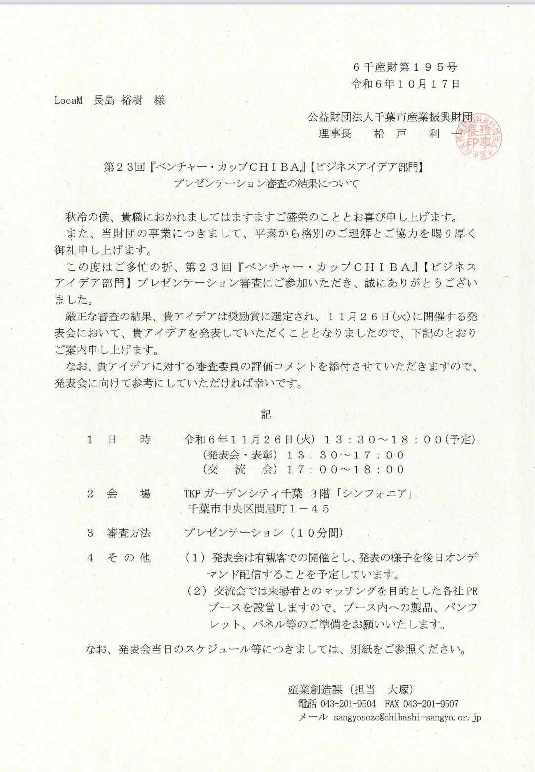 クラファンへの挑戦と並行して、千葉市産業振興財団様主催のベンチャーカップCHIBA"ビジネスアイデア部門"へ、
