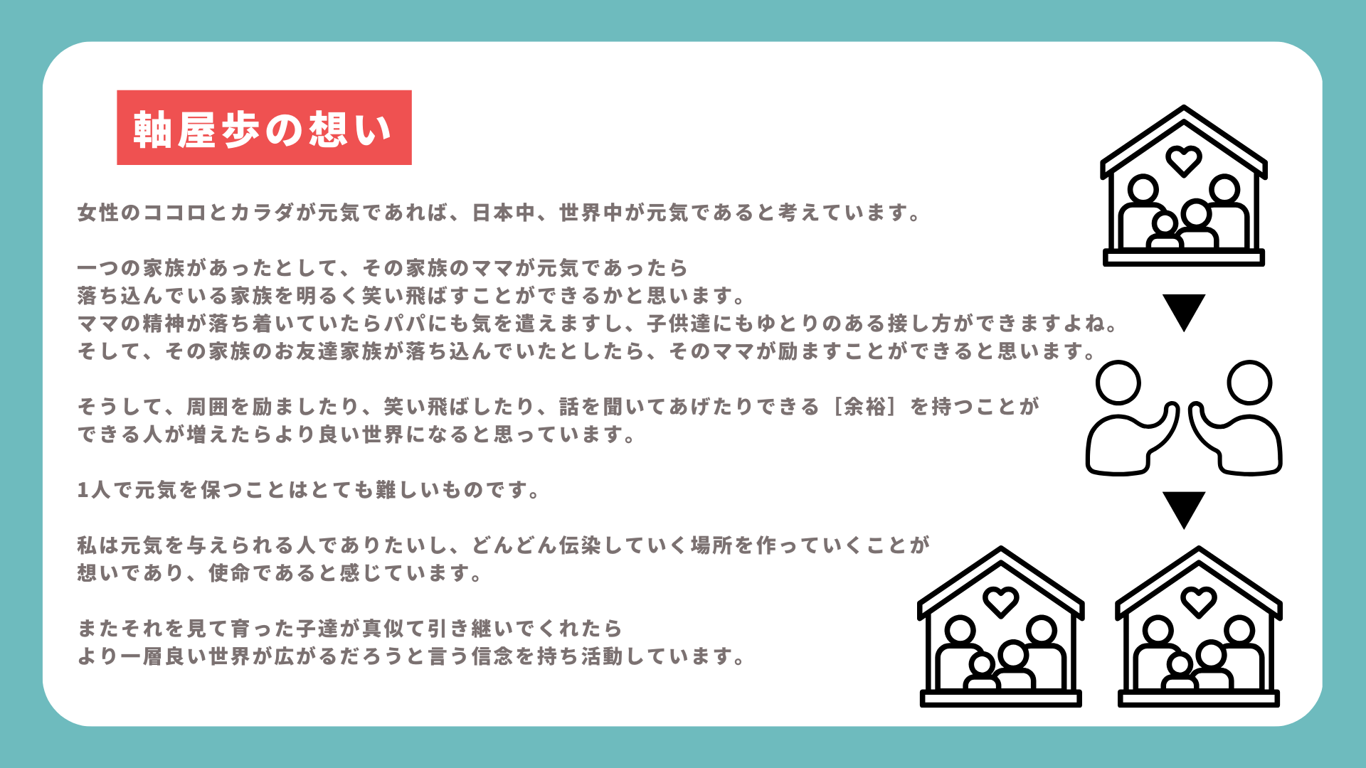 こうした状況を前向きに乗り越えていくためには、ママのココロとカラダを整えることがとても大事だと考えています。
