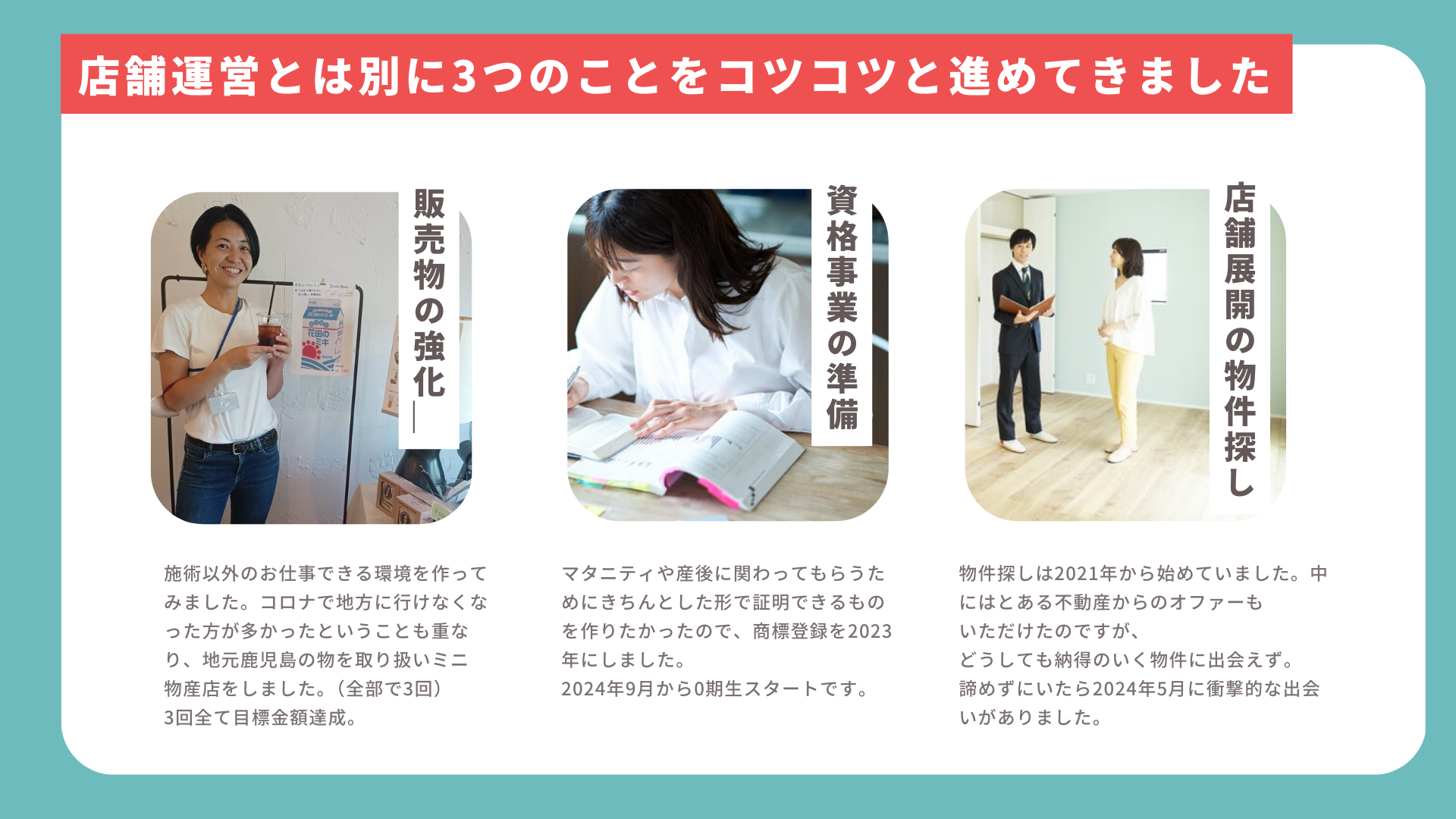 2号店の出店を機に、一緒に走り出している資格事業も進めていきます。