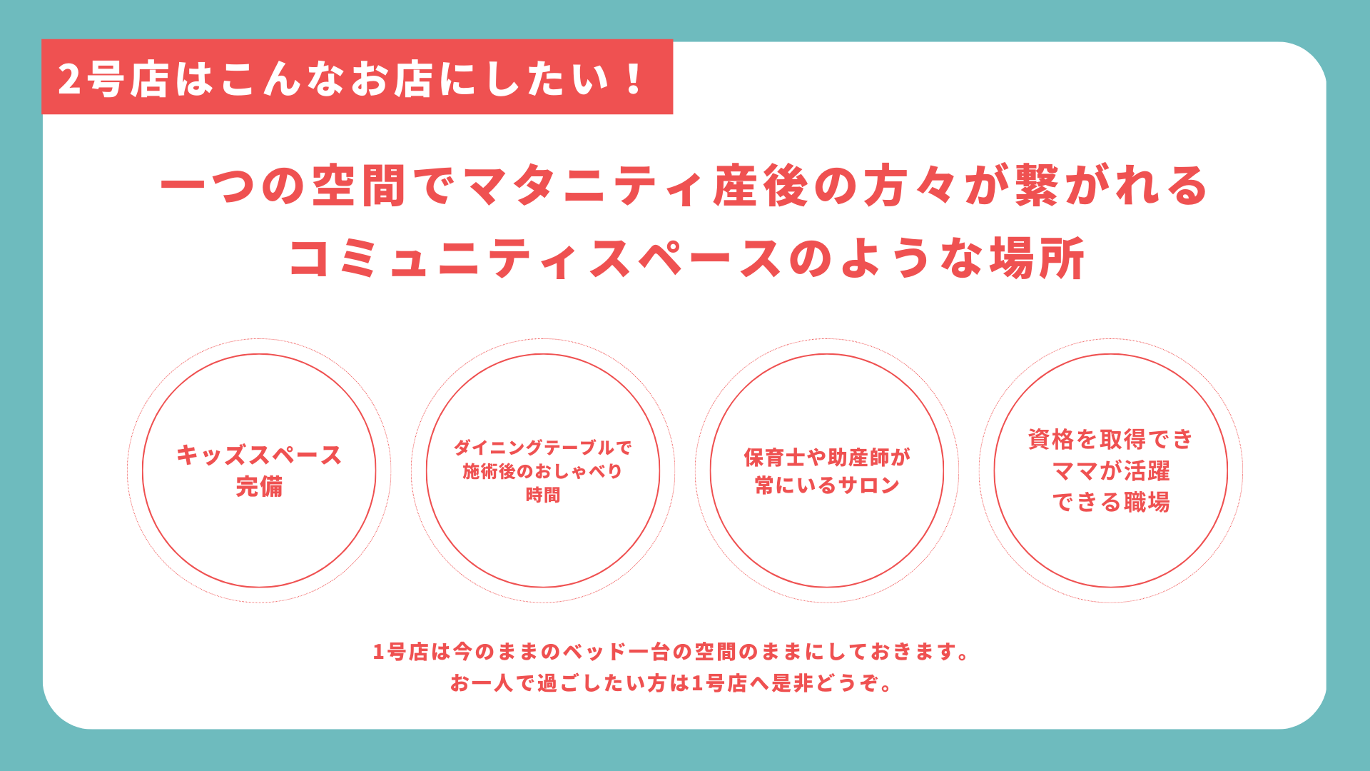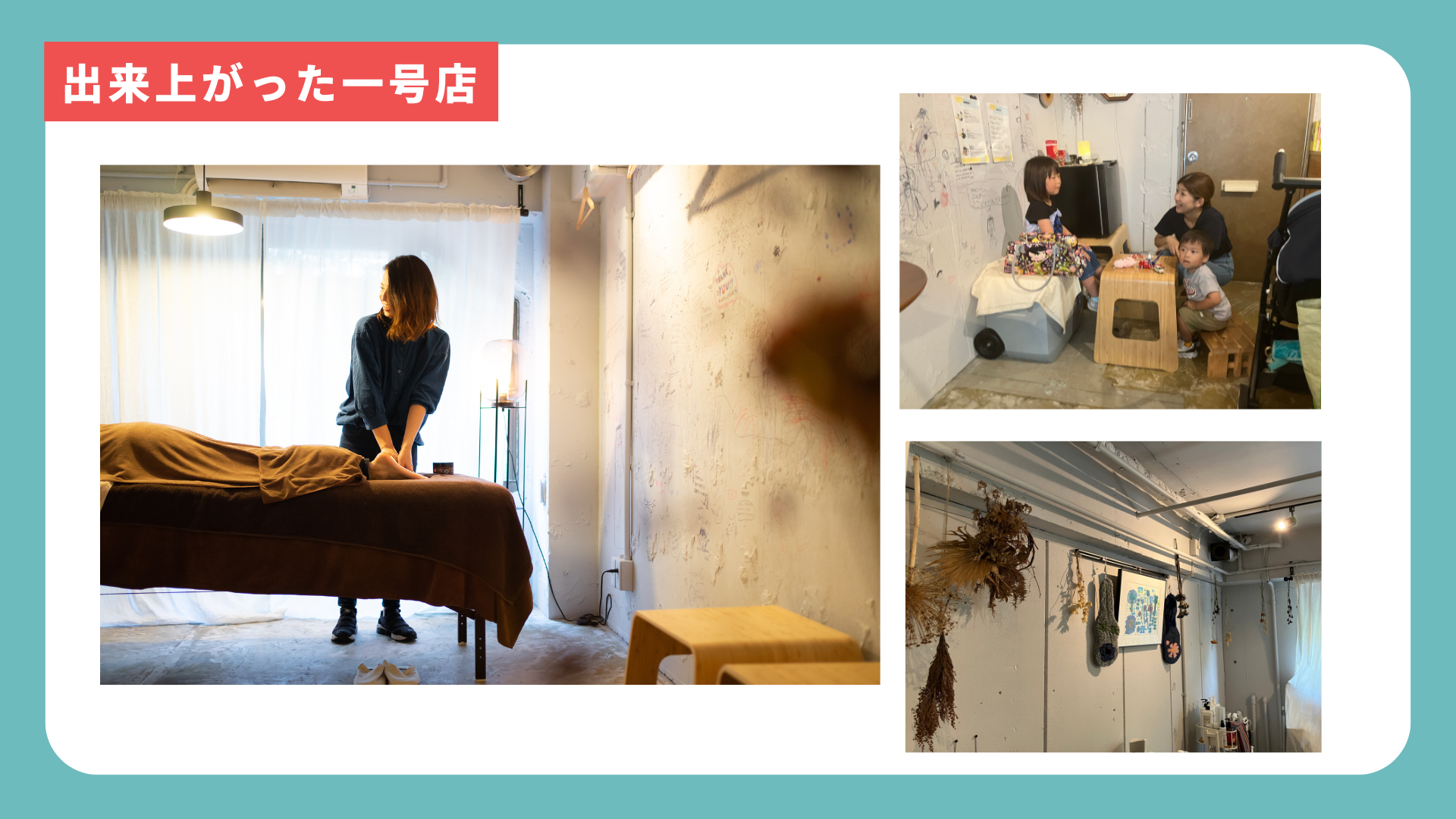 すぐに契約を決意。資金面の課題がありましたが、金融公庫の担当者や友人の協力を得て2ヶ月後には店舗をオープン。新たな場所で、マタニティ期や産後のママを整体施術を通じてサポートする挑戦が始まりました。