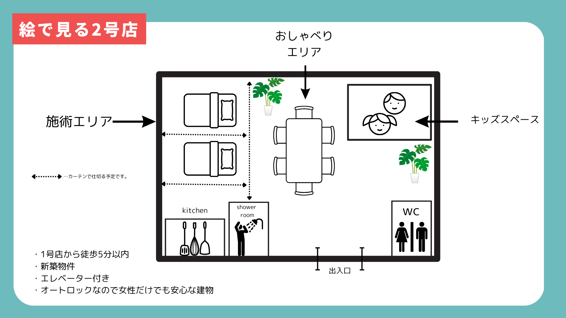 ・お客様同士が顔を合わせることのないよう、施術前後は30分余裕を持った予約