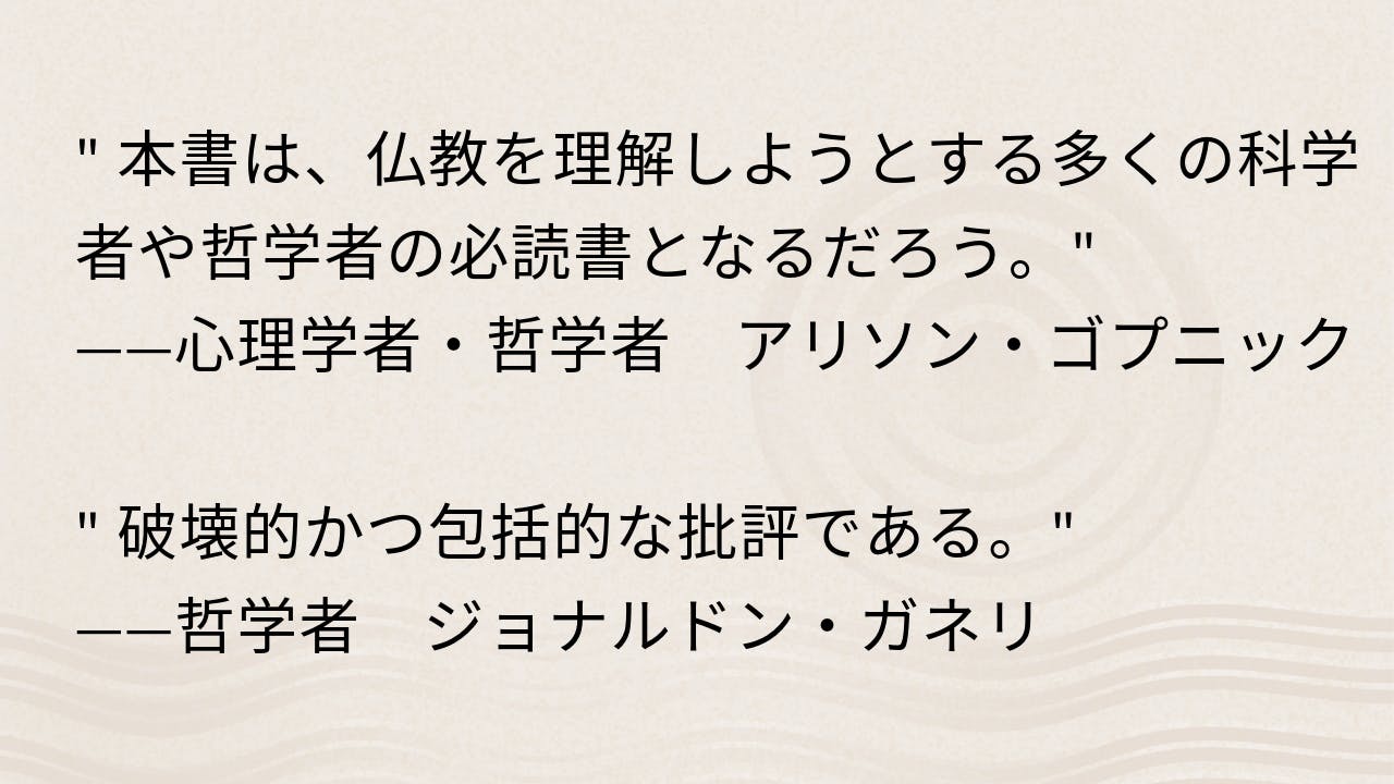 "本書で語られている仏教に関する議論や認知科学の知識は、この先日本でも常識になると思います。"