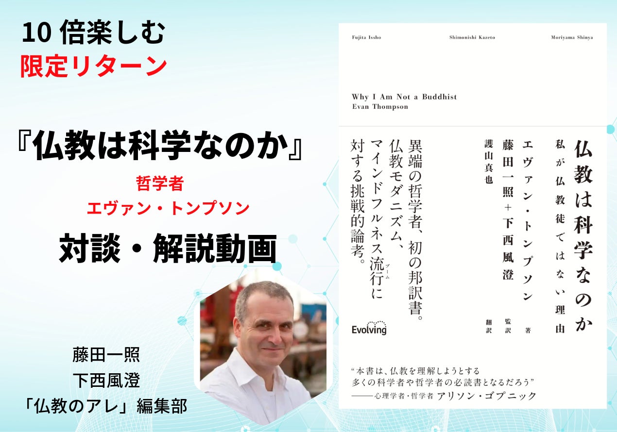 この特別リターンは本書を10倍楽しめると同時に理解を10倍深めるものです。特別動画はこのプロジェクト限定でのご提供となりますので、どうかこの貴重な機会をお見逃しなくご参加ください。仏教と科学の対話が織りなす最先端の知的冒険に皆さまをご招待し、ともに仏教と科学の新たな探求の旅に出発できることを願っています。