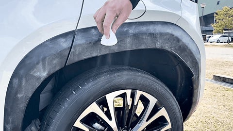 ①車にホコリや砂等が付いている場合は軽く拭き取ります。