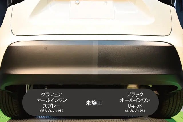 グラフェンALL IN ONEスプレーは車本体のグラフェンコーティングとして素晴らしい製品ですが、樹脂パーツやタイヤには今回の【BLACKオールインワンリキッド】が最適でした!