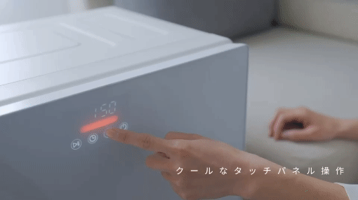 ガラスドアはフラットで美しい艶と透明感、思わず触りたくなる質感、浮かび上がるタッチパネル、家庭用衣類乾燥機の新次元へ。小型でも驚異の乾燥力!