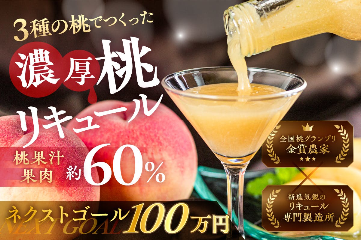 8/24よりスタートしました「金賞受賞農家の桃を贅沢に使った華やかな香りとドロッと濃厚な極上の桃リキュール」ですが、皆様のおかげで、目標の30万円を達成いたしました!