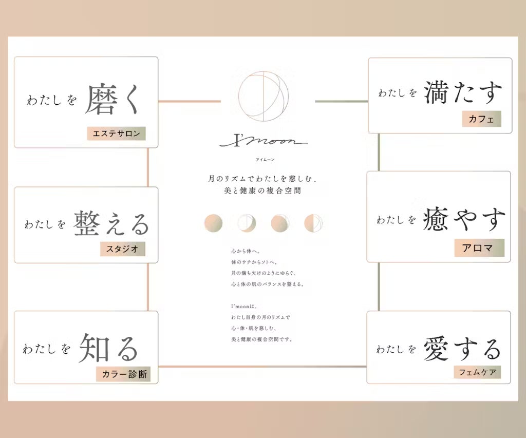 新店舗「I'moon」は、個々の「月のリズム」に合わせた美と健康の整え方を提案し続けます。