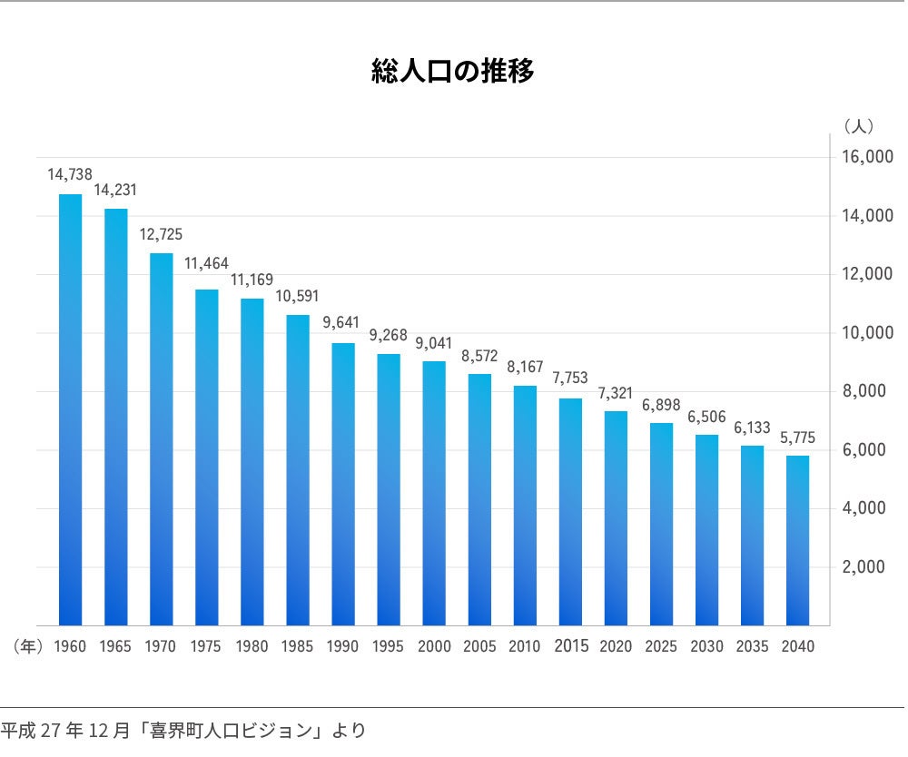 喜界島の人口は年々減り続け、50年前には12,000人程であった人口は、2024年現在6,300人程となり過疎化が進んでいます。人口減少により、産業、経済、教育など全てにおいて島の活性化は難しくなります。