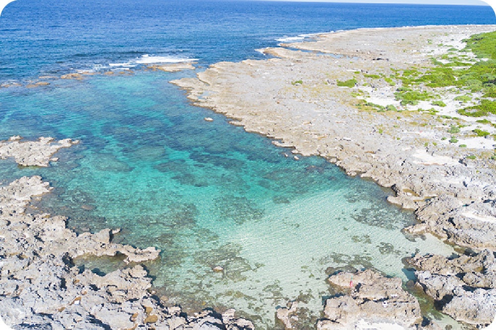 喜界島は、鹿児島県の奄美群島に属し、鹿児島から南へ約380㎞、周囲約50㎞、人口約6,300人の小さな隆起サンゴ礁の島です。