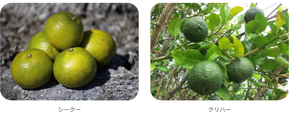 この2つの柑橘にはそれぞれに個性があり、「シークー」は、アロマオイルで有名なベルガモットオレンジと似た独特な香りが特徴。上品でみずみずしい香りです。名前は似ていますがシークワーサーの仲間ではありません。
