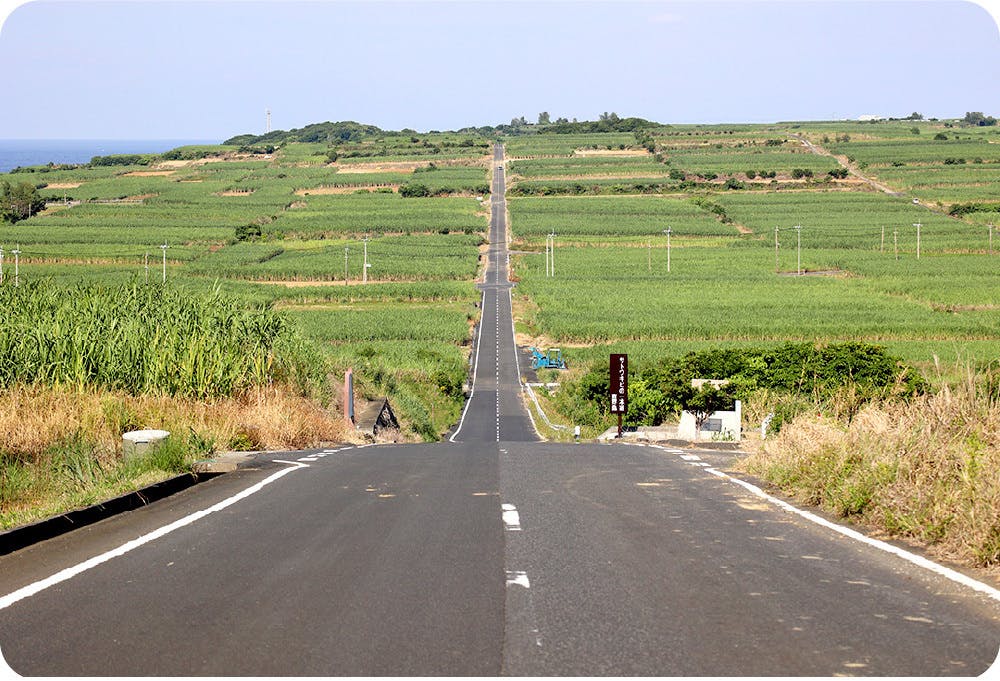 澄み渡る青空の下、どこまでもつづくサトウキビ畑はぜひ現地で見てほしい景色です。