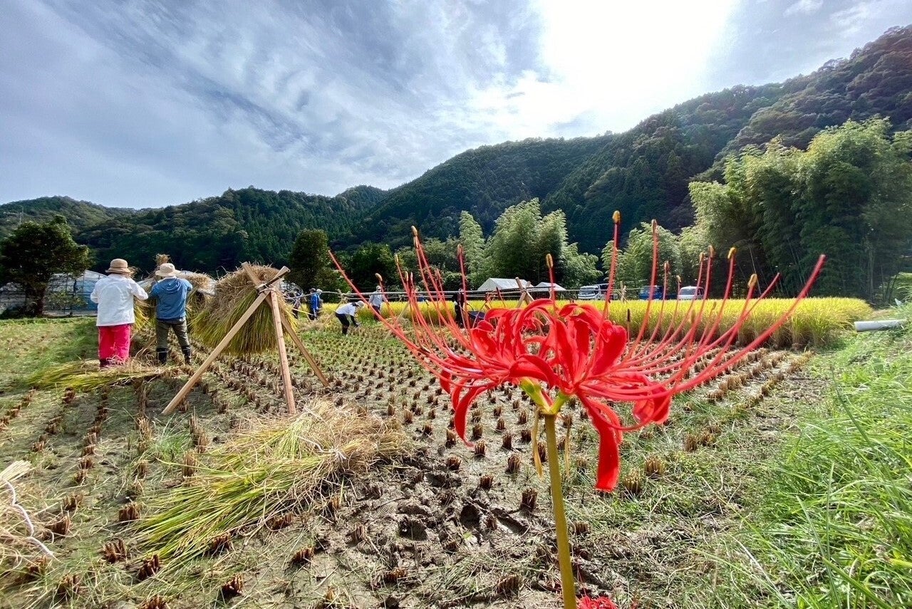 毎年おこなわれる、無手無冠酒造り体験教室での稲刈り風景をお届けします。5月頃に田植えから始め、栗焼酎の廃液と蔵人みずから作るぼかし肥料を使用し、紙マルチを敷きながら手植えをします。原料使用後も、無駄にすることがないよう循環型農業をおこなっています。