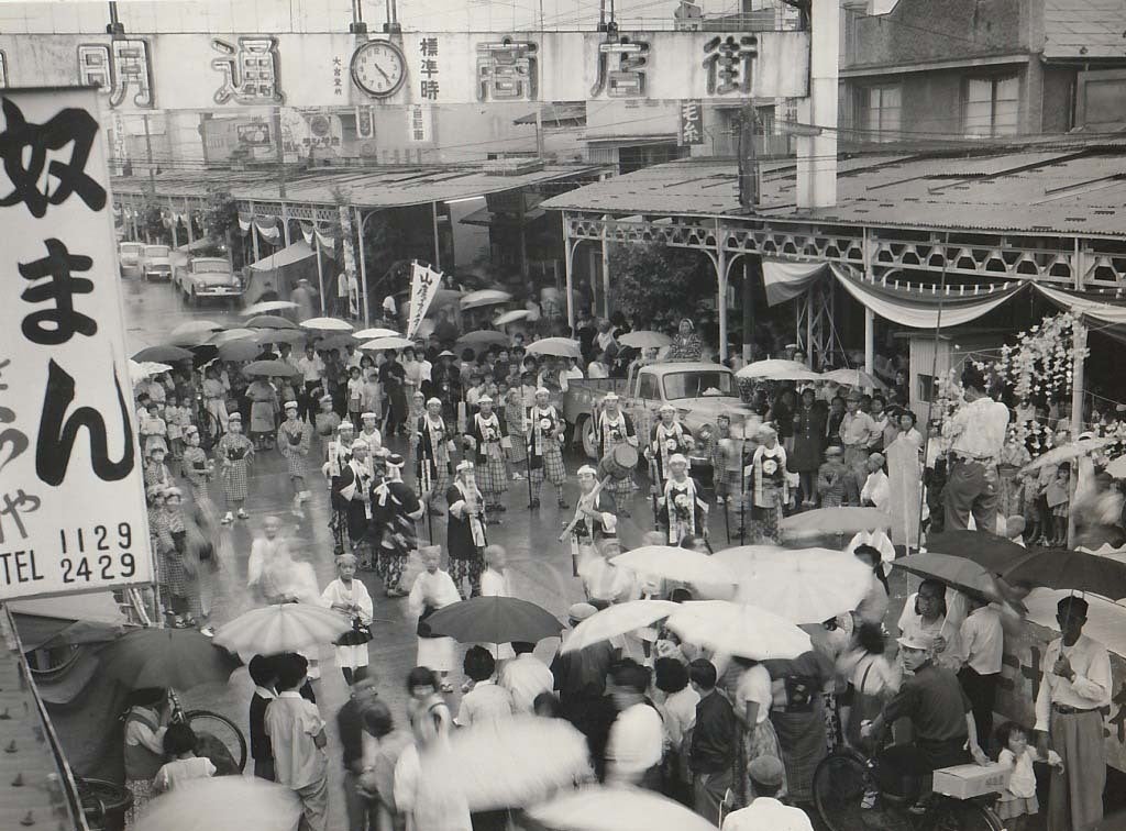 近年の神明通り商店街、賑わいを見せる神明神社祭礼。