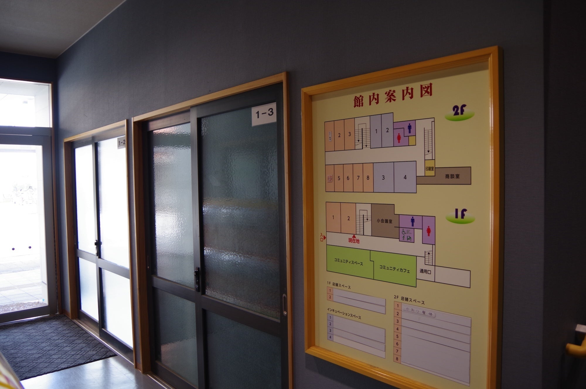 會津商人館の2Fスペース。1F同様、部屋ごとのレンタルオフィスの仕様になっているが、現在は入居事業者も少なく、空きが目立っている。