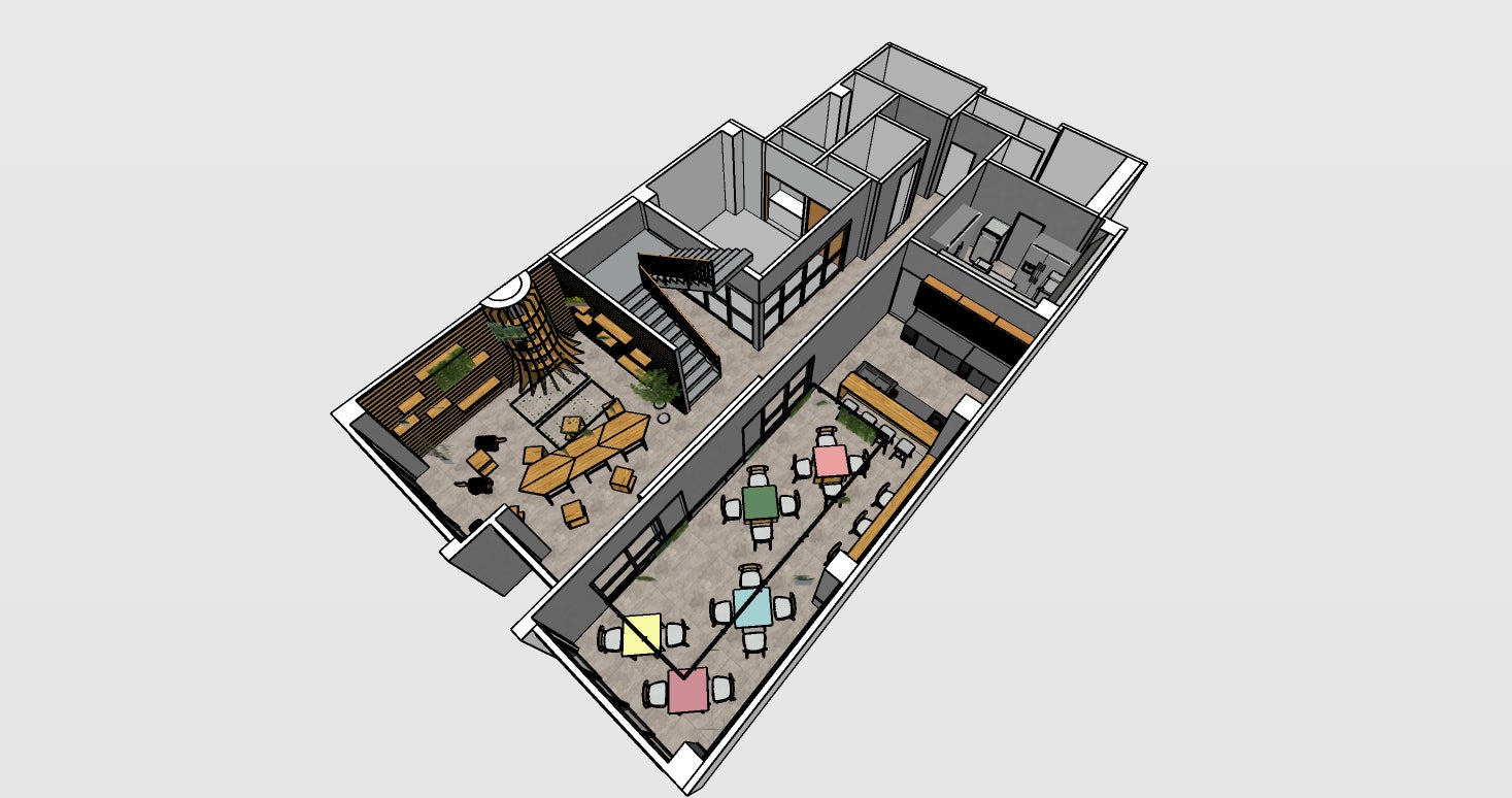 交流拠点としてオープンした「會津商人館」ですが、これまでは閉鎖的でどこか入りづらい雰囲気があり、有効に活用されていない状況でした。そのため、老若男女が自由に集える勉強スペースや会議スペース、飲食スペースが必要であると考えています。