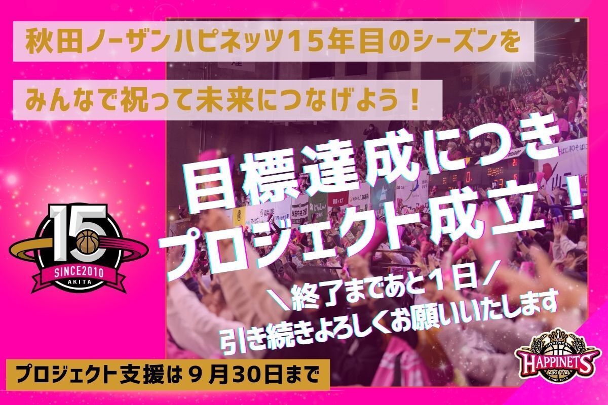 この度、秋田ノーザンハピネッツ創設15年目を迎えるにあたり、記念事業を実施したいと考えております。
