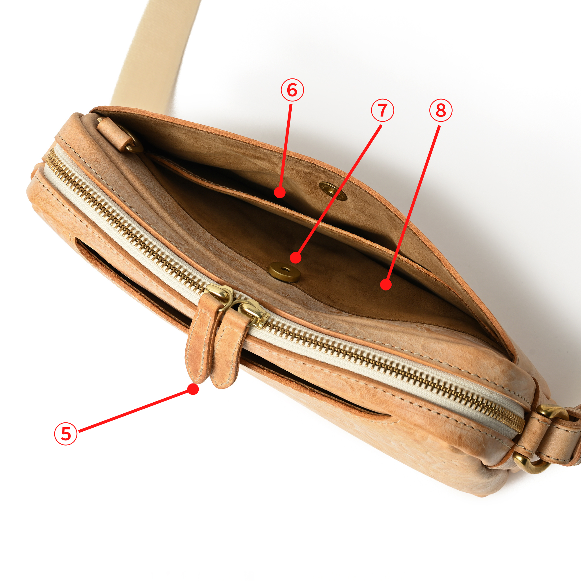 革素材ですので使用をしていく内に色落ちする場合がございますが、その変化を含めて楽しんでいただければ幸いです。また天然皮革ですので水に弱く、シミの原因となります。ご注意の上ご使用ください。