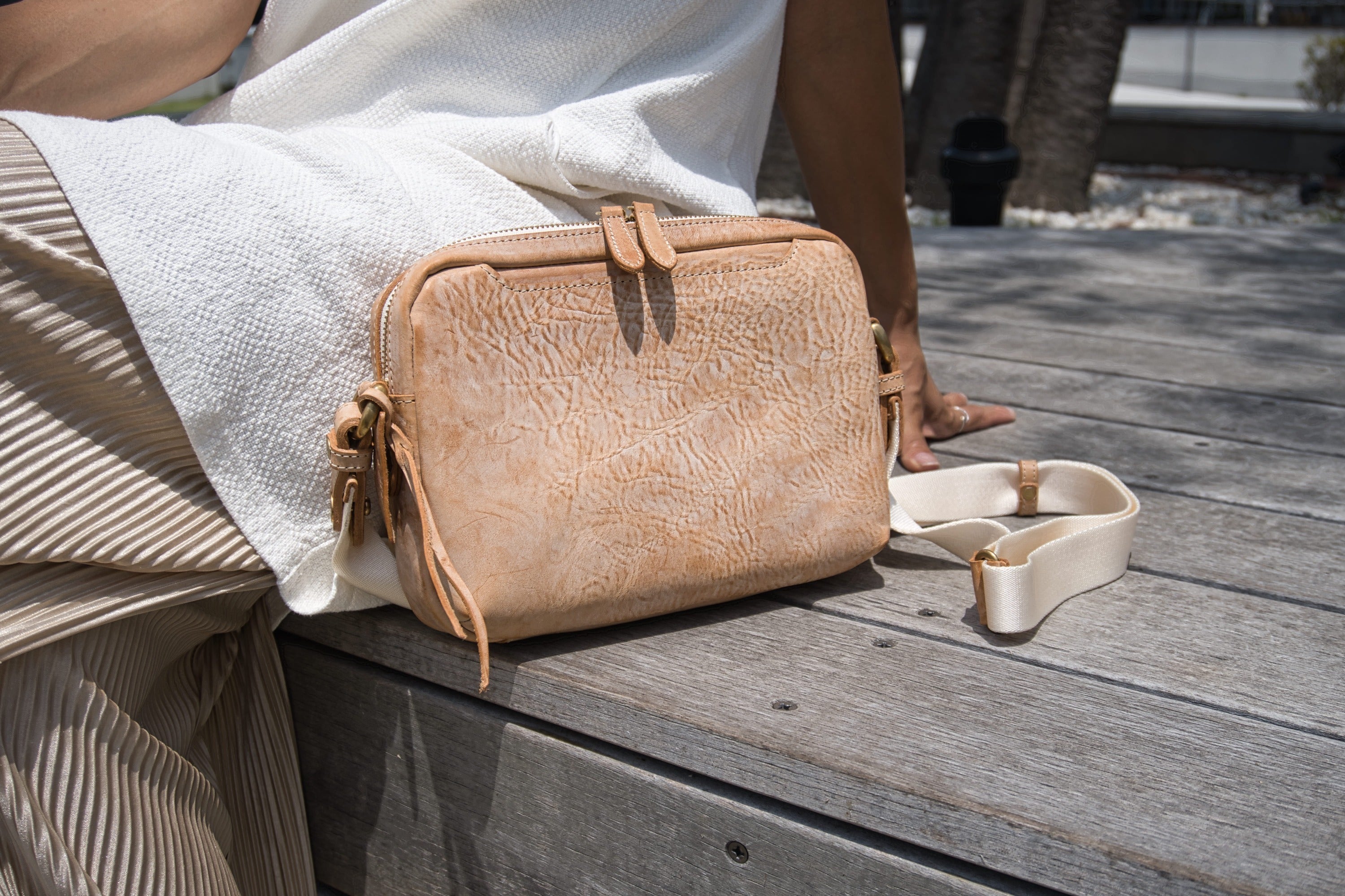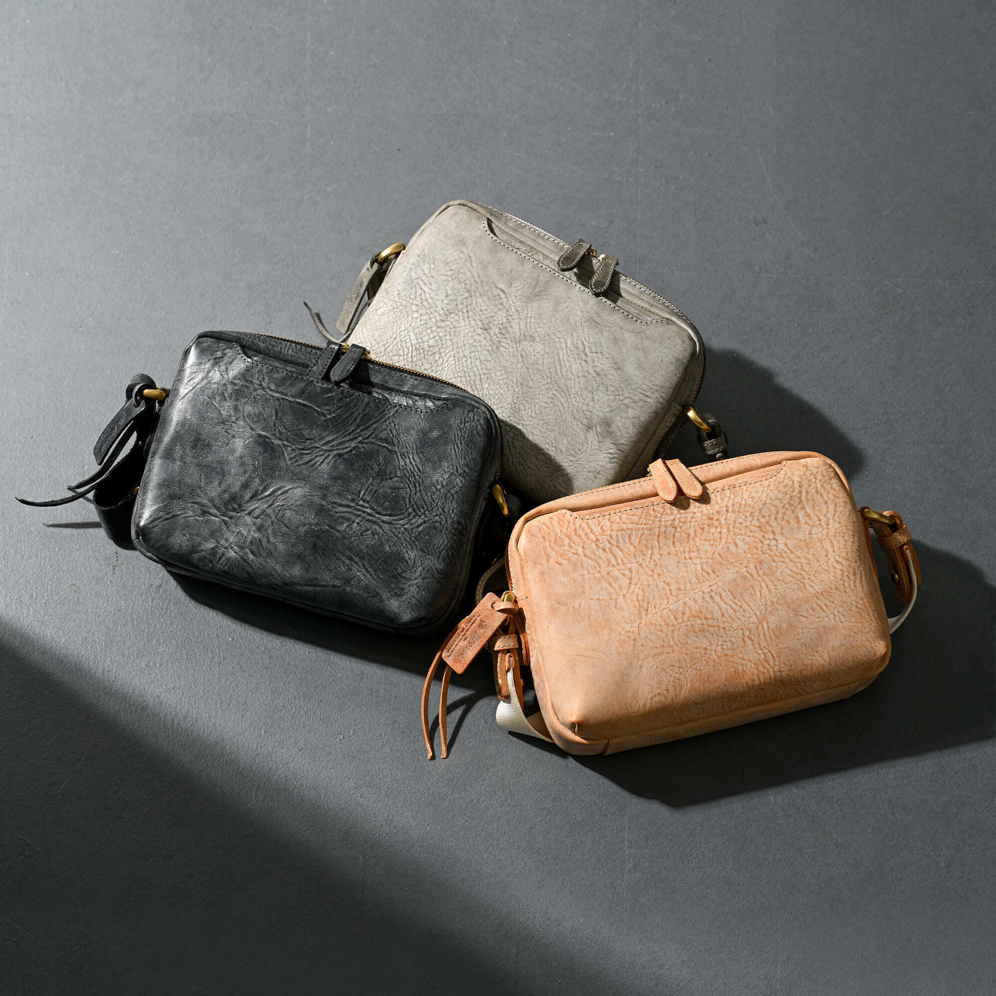 クロムなどの薬品を使わず、植物の渋(タンニン)で時間をかけてじっくりなめしたナチュラルな優しいレザー。天然の血筋やシボ感を生かした、革の無駄を出さないサスティナブルなデザインも意識しました。
