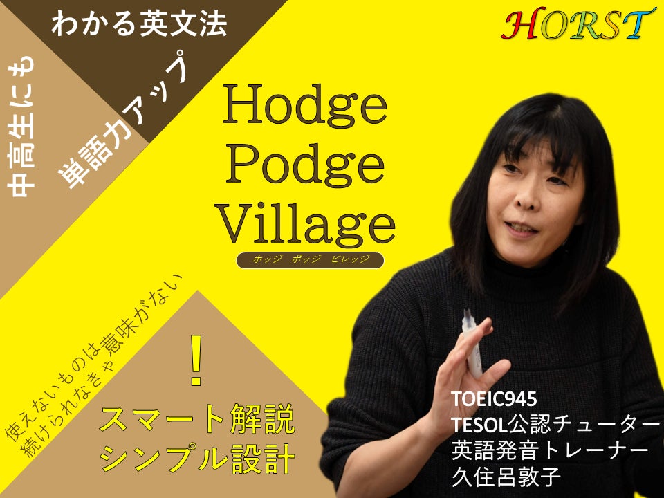 1つ目は1人でトレーニングしたい方に向けて制作した専用サイトHodgePodgeVillage(ホッジポッジビレッジ)。こちらは中学校で習う英文法を始め、英単語の暗記カードや、英語発音矯正もセットにした「英語を話すために必要なものを集めた教材」になります。