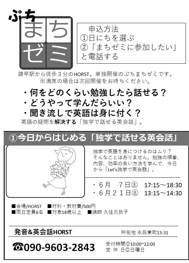 2025/05/13 14:40大変ご無沙汰しております。HORST代表の久住呂敦子でございます。皆様におかれましては、お変わりなくお過ごしのことと存じます。このたびは、私どもHORSTの活動にご支援を賜り、誠にありがとうございました。皆様からいただいたご支援金が、先日CAMPFIREを通じて無事に振り込まれ、スタッフ一同、心より感謝するとともに、まずは一安心しているところでございます。さて、最近の活動についてご報告申し上げます。現在、当面のあいだオンライン英会話の体験授業を無料で提供しております。この取り組みが奏功し、少しずつではございますが、生徒の数も増えてまいりました。なお、体験授業の無料提供は、今回ご支援いただいた皆様に限らず、「どなたでも」ご利用いただけます。英語にご興味のあるお知り合いの方がいらっしゃいましたら、ぜひお気軽にお知らせいただけますと幸いです。また、講師のキャミルが将来的に自立して活動できるよう、現在フィリピン国内にて、ホームページの管理をお願いできる現地企業を選定しているところです。さらに、来日に向けたビザ申請書類の準備、新しい教材の作成、そして一般の方々への告知活動など、多岐にわたる準備を進めております。これからも、HORSTは「学ぶことは楽しい」という理念のもと、一歩一歩着実に活動を続けてまいります。皆様の温かいご支援が、私たちの大きな励みとなっております。今後ともどうぞよろしくお願い申し上げます。敬具HORST代表久住呂 敦子・・・・・・・オンライン英会話無料体験のお申込み方法・お客様のお名前・「オンライン英会話を希望」とメールまたはLINEでお知らせください。・・・・・・・・イベントのお知らせ【独学で話せる英会話】 申込方法①日にちを選ぶ②「まちゼミに参加したい」と電話する・6月 7日㊏ 17:15~18:30・6月21日㊏ 13:15~14:30■会場/HORST ■材料・教材費/500円■両日定員6名 ■対象18歳以上 ■講師 久住呂敦子☎090-9603-2843 もっと見る支援金の詳細とクラウドファンディング終了のご報告